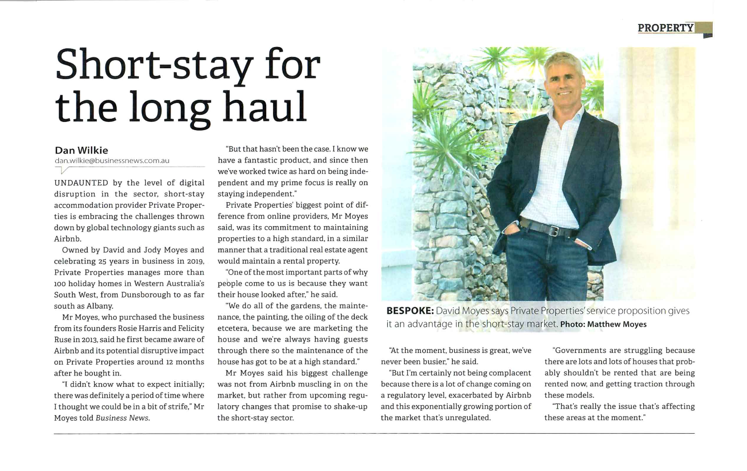 Private Properties' biggest point of difference from online providers, Mr Moyes said, was its commitment to maintaining the properties to a high standard