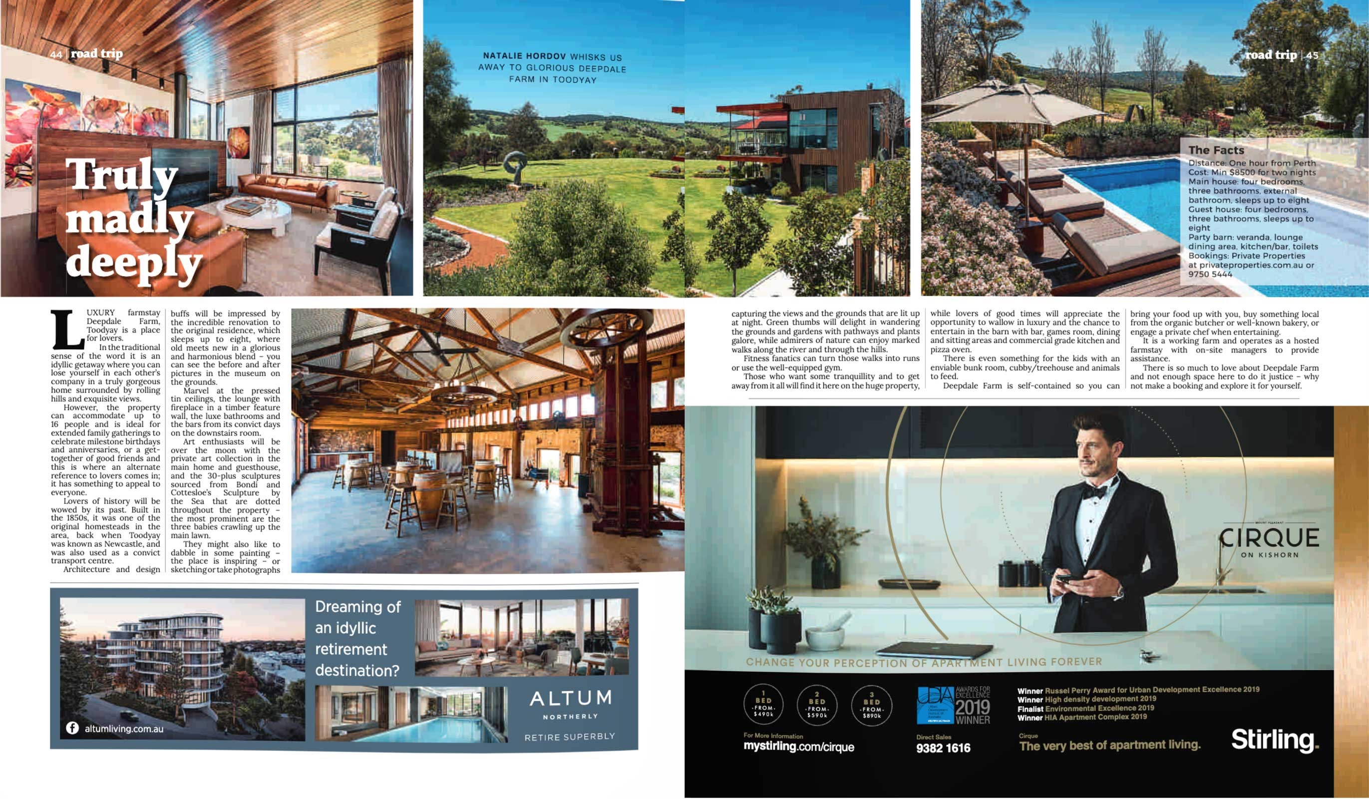 Luxury holidaying is continuing to move into boutique realms, away from chain hotels and into private luxury properties and experiences. Deepdale Farm in Western Australia’s Toodyay is just that...
