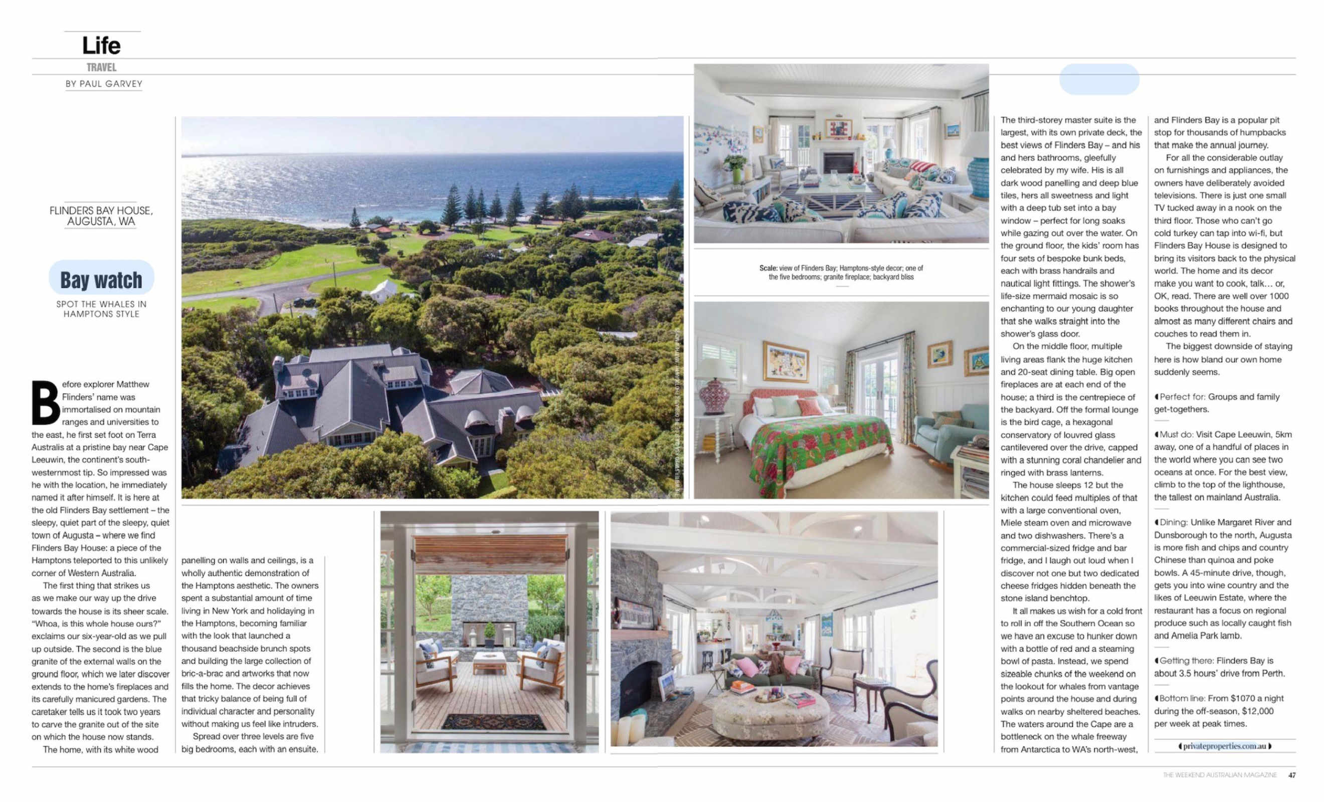 'here at the old Flinders Bay settlement - the sleepy, quiet part of the sleepy, quiet town of Augusta - where we find Flinders Bay House: a piece of the Hamptons teleported to this unlikely corner of Western Australia.'