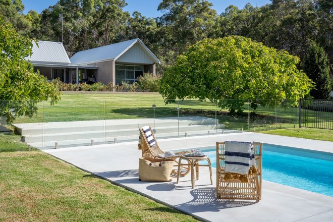 The sun-drenched pool, gorgeous timber deck areas, dedicated games room and idyllic country setting are amazing draw cards at this rural Yallingup location. The beaches may beckon but, let’s face it, with your own pool, spa and plenty of room for everyone, you’ll be happy to stay at home.
