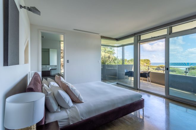 This hillside beauty not only boasts floor to ceiling windows that frame the stunning coastal views — south to Main Break and north to Sugarloaf Rock — its shimmering plunge pool, will tempt you all day long.