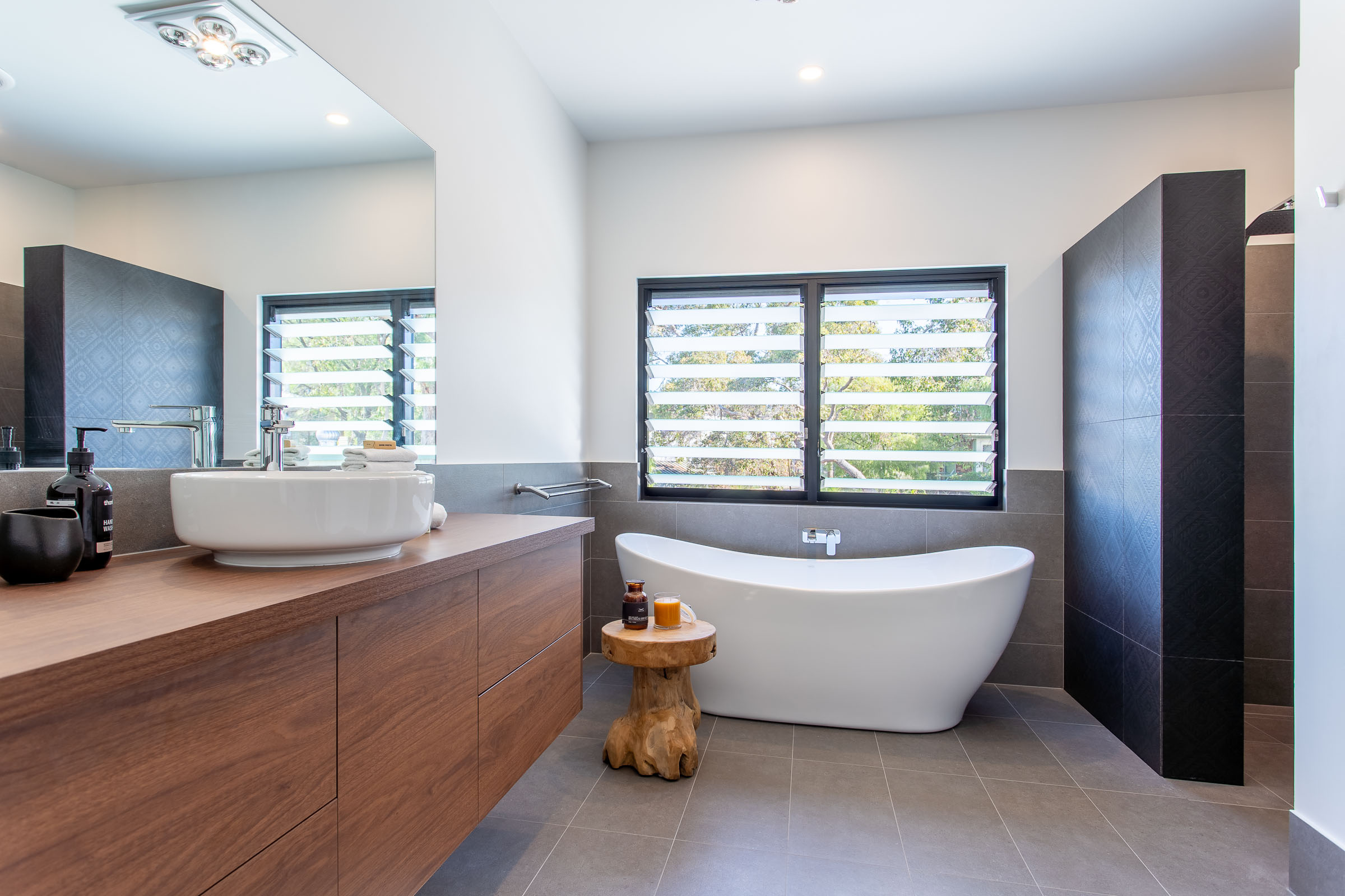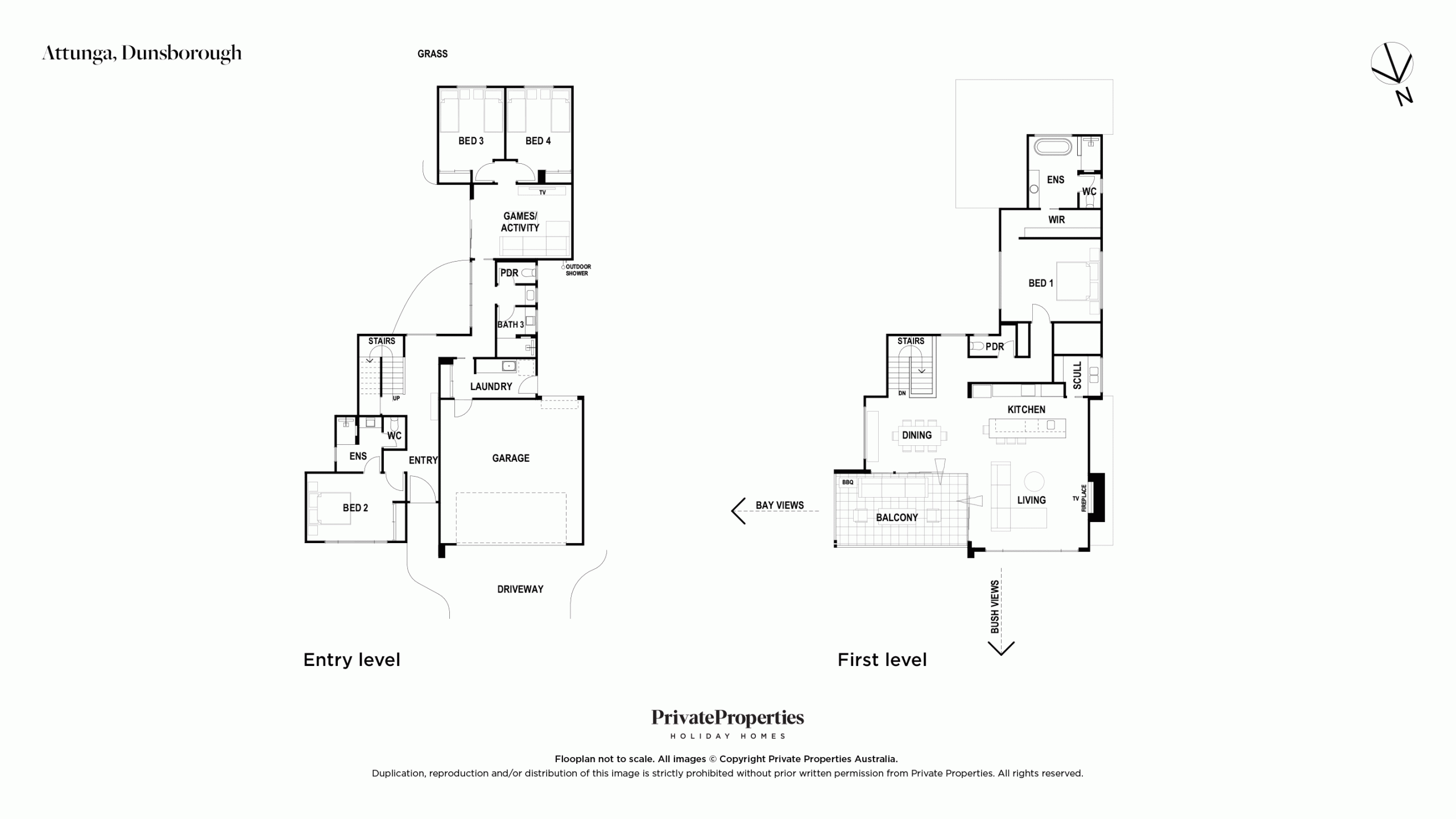 The master bedroom, walk-in-robe and ensuite upstairs creates a private couples retreat. There are three bedrooms downstairs, one Queen bedroom with ensuite at the front of the home and the two King single bedrooms adjacent to the TV/games room.