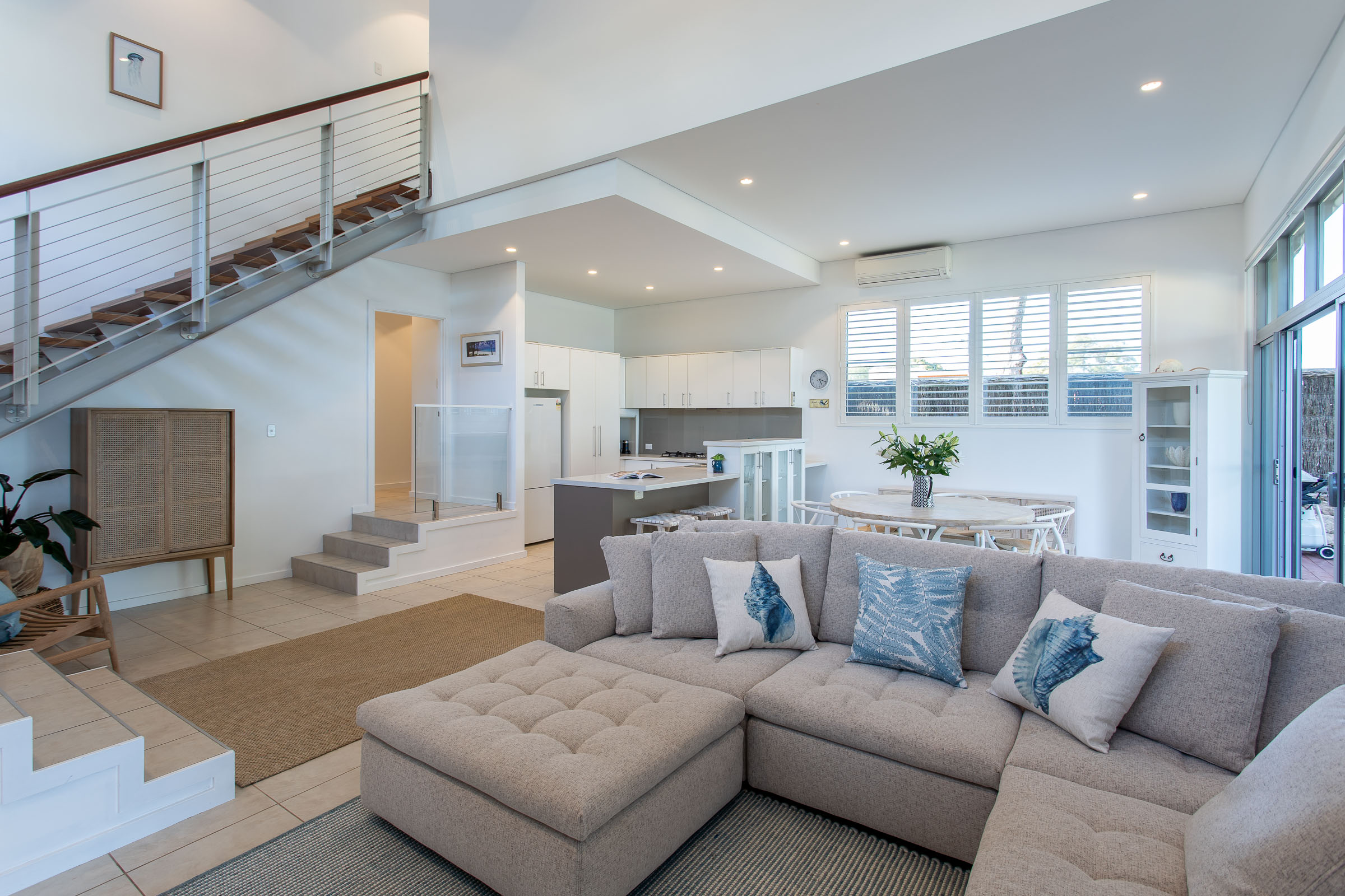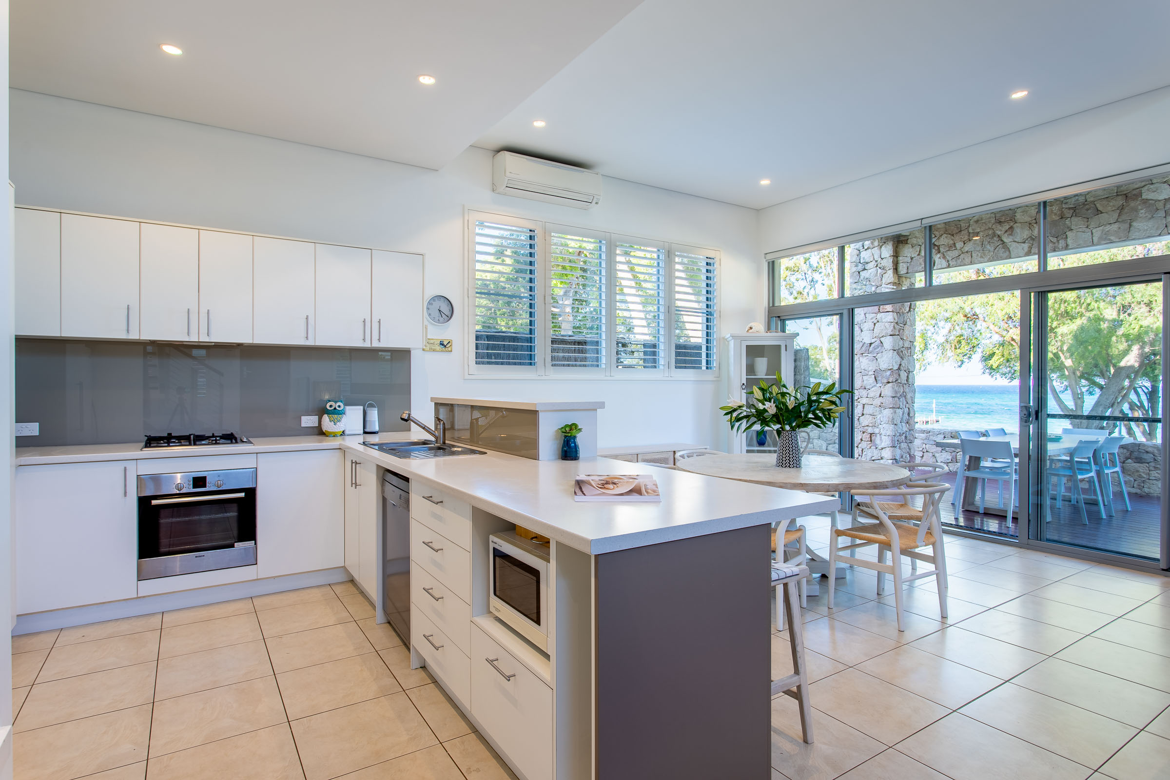 Fall asleep to the rhythmic sound of the water lapping at the shore and the whisper of the sea breeze from the upper level master bedroom. When you wake, take a wander onto the balcony and absorb the view over a leisurely brunch while you decide what to do for the day. Downstairs, there are two more bedrooms, shared bathroom, open plan living, kitchen and dining area and alfresco entertainment deck where you can reach out and nearly touch the bay. Plus there’s the creature comforts with reverse cycle A/C , two smart Apple TVs and a Nespresso machine for that morning pick-me-up.