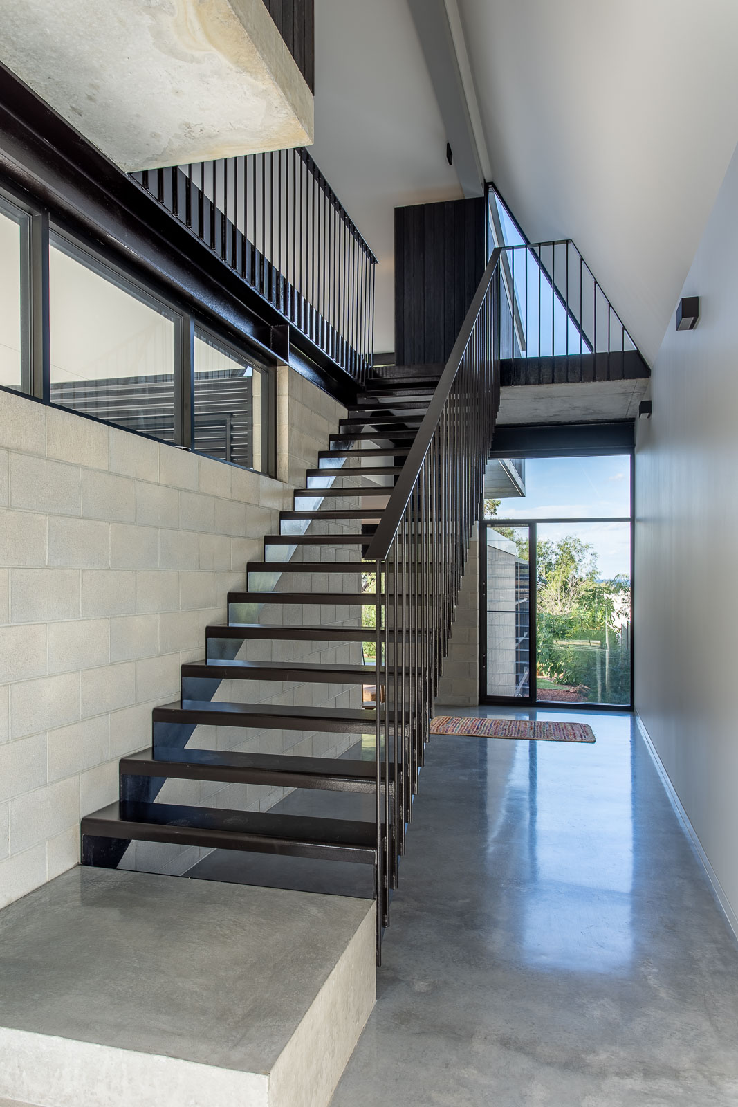 As the front door swings open to the clean and sleek entryway, it’s obvious this is a unique home. A modern industrial style: uncluttered, cool, and a certain raw texture that makes an eye-popping first impression.