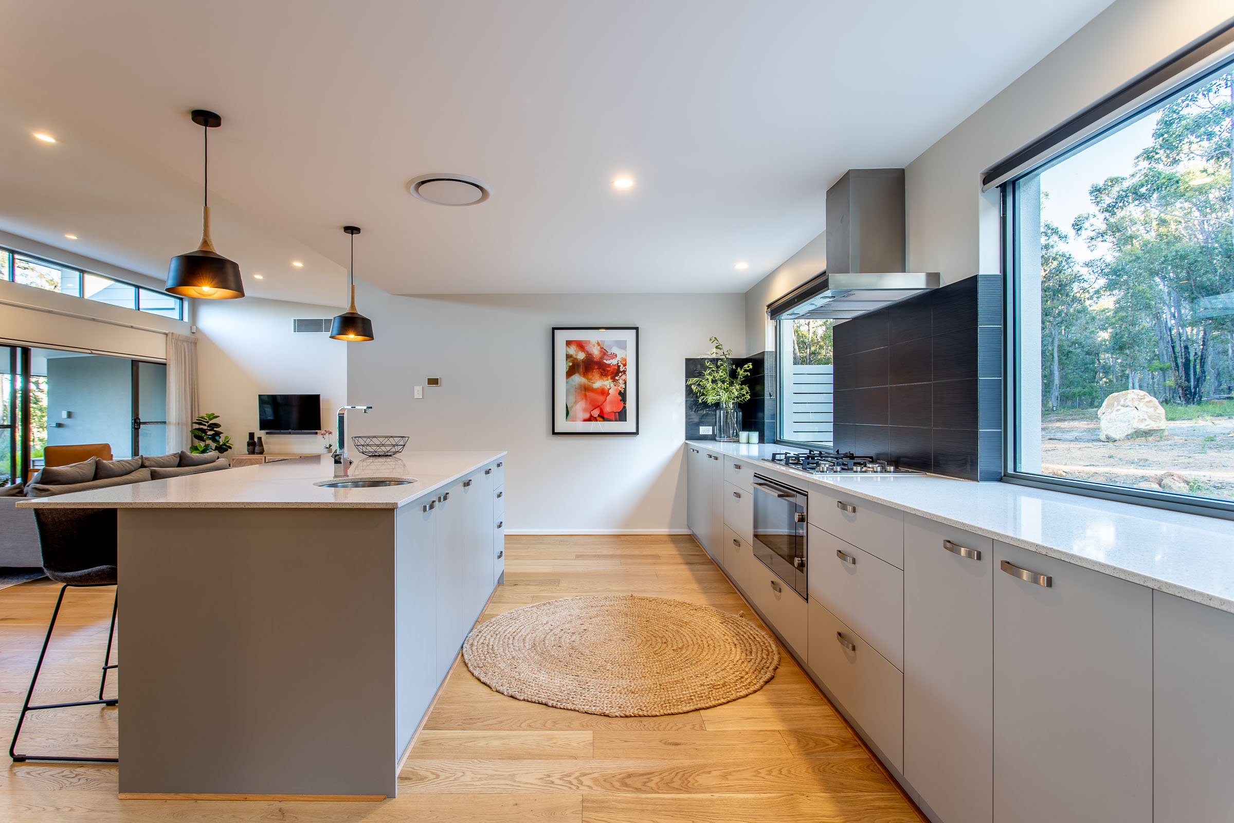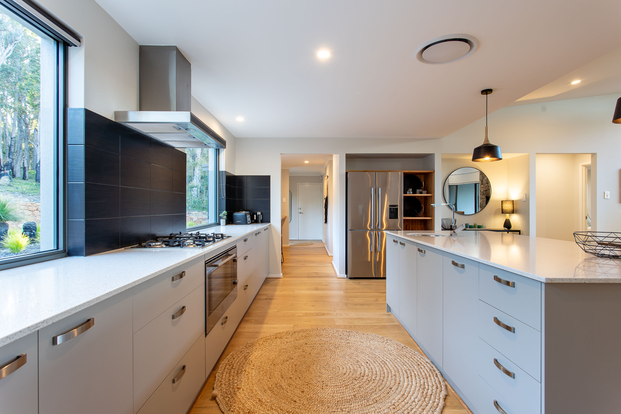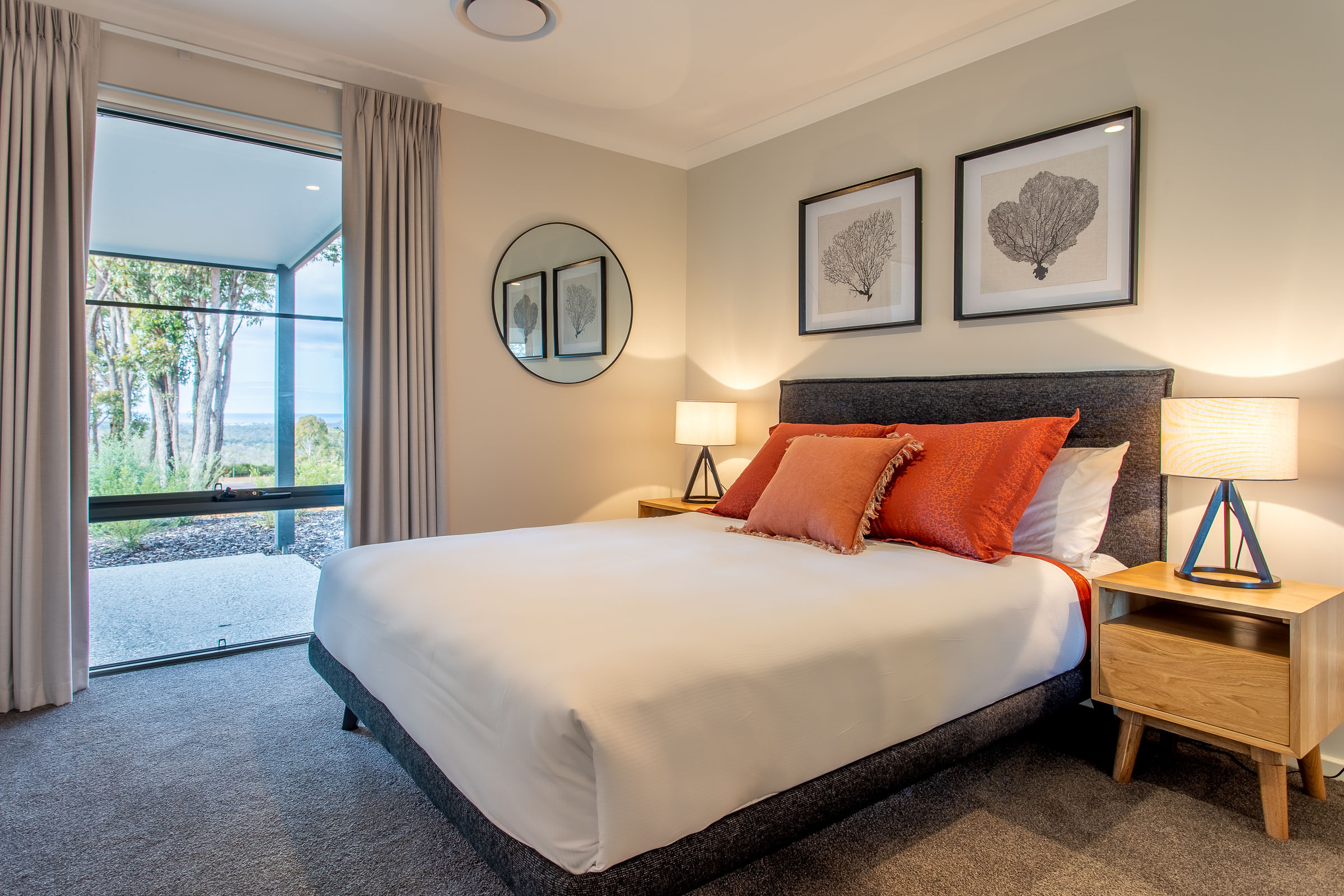 With four bedrooms and two bathrooms, this is wonderfully comfortable for eight people. The master bedroom features a king-size bed and roomy walk-in robe, while the remaining three bedrooms are queen-sized, and all have nice views to the bush.