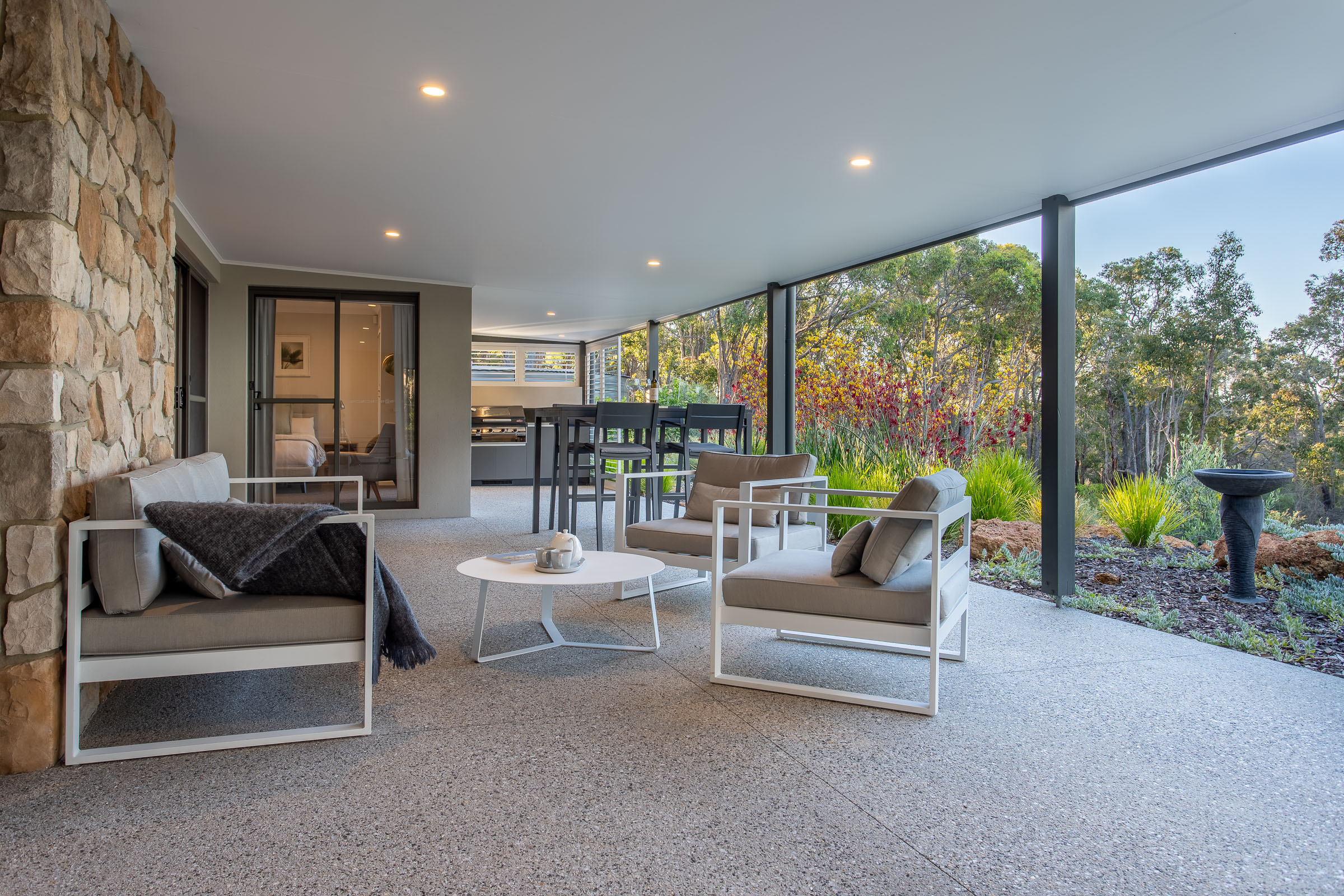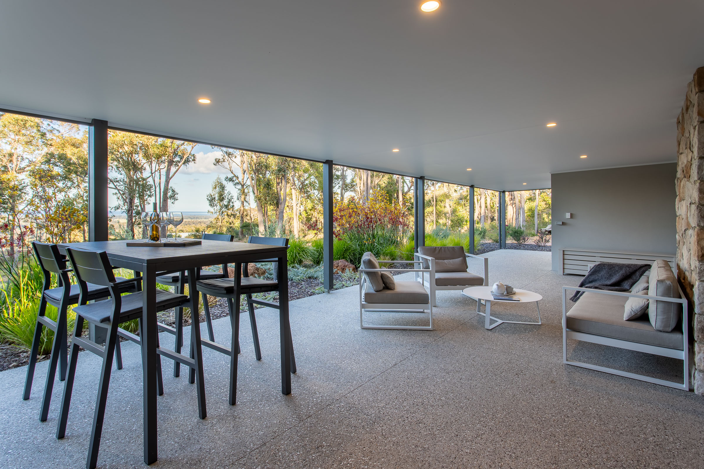 Cleverly designed across a single level, the showstopping stone fireplace is the heart of the home with everything branching from this focal point. Expansive sliding doors open each side of the fireplace onto the spacious verandah where you can relax and enjoy the sweeping views of Geographe Bay. A theatre room and children’s playroom provide additional stylish, living spaces.