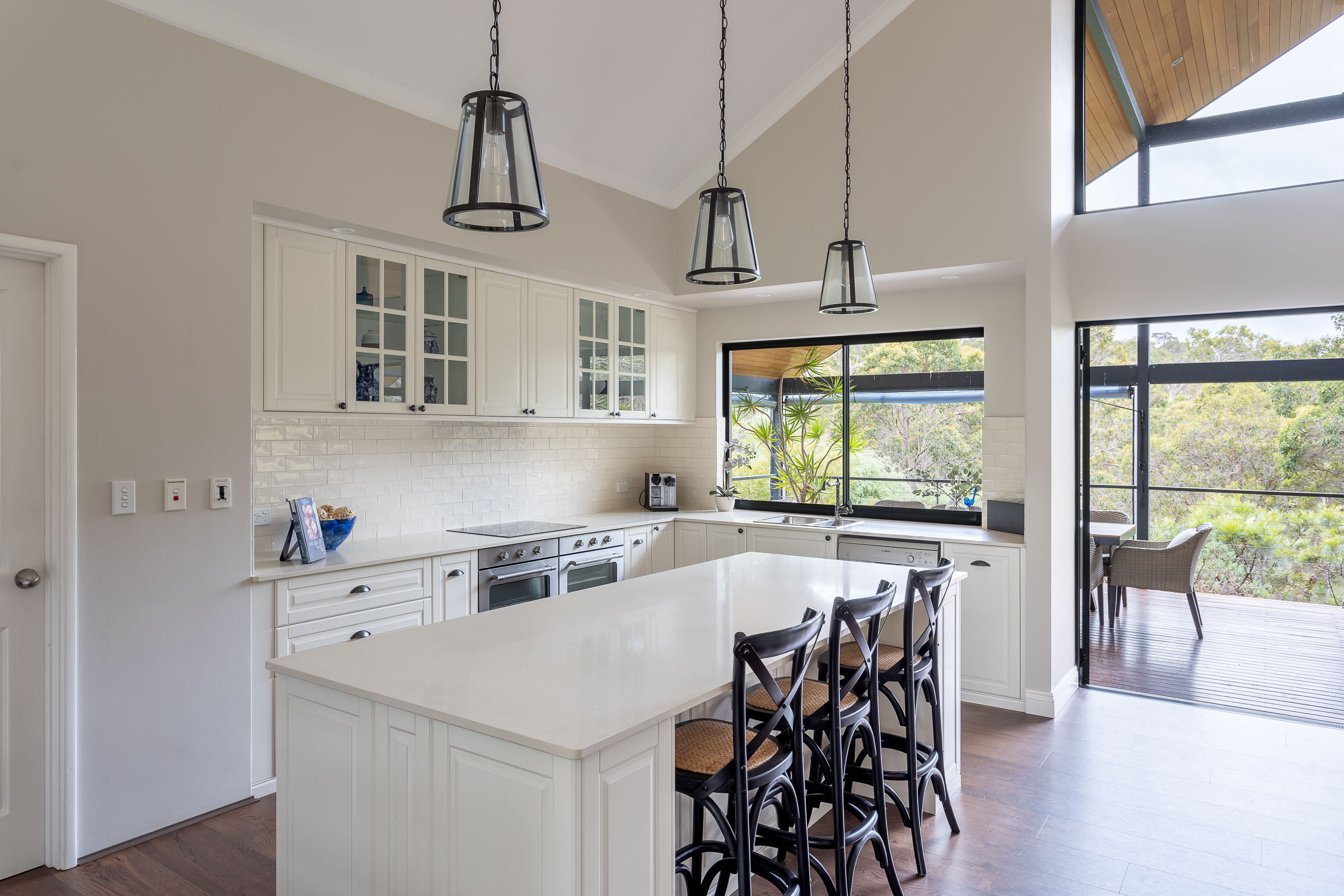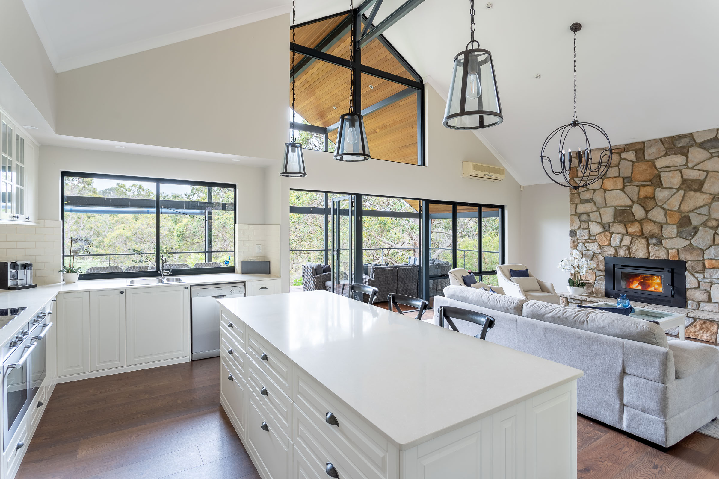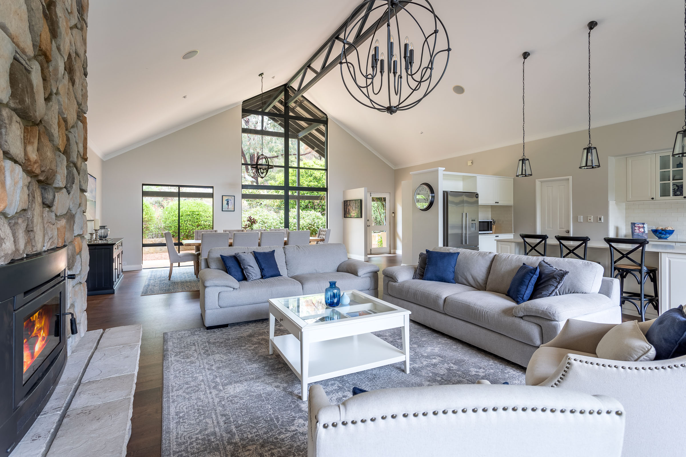 There’s so much to fall in love with at Killara. This property is sprawled across one level, with easy access to everything you’ll possibly need for a charmed stay. The dramatic cathedral ceiling allows for sunlight to stream through the house, warming up the interior and bringing a glorious morning exuberance to the day. With wooden flooring, furnishings in dove grey and white and a natural stone fireplace, you’ll be kicking off your shoes and easing yourself onto the sofa within minutes of arriving.