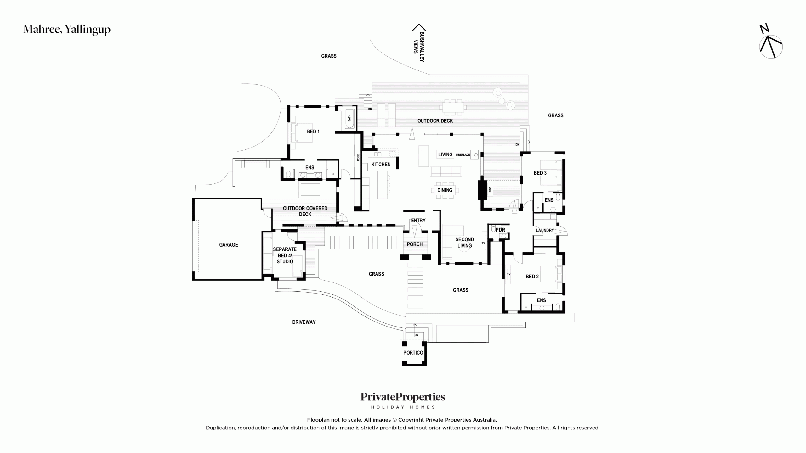 The fourth bedroom is in a separate studio, very close to the house but may not be suitable for toddlers
