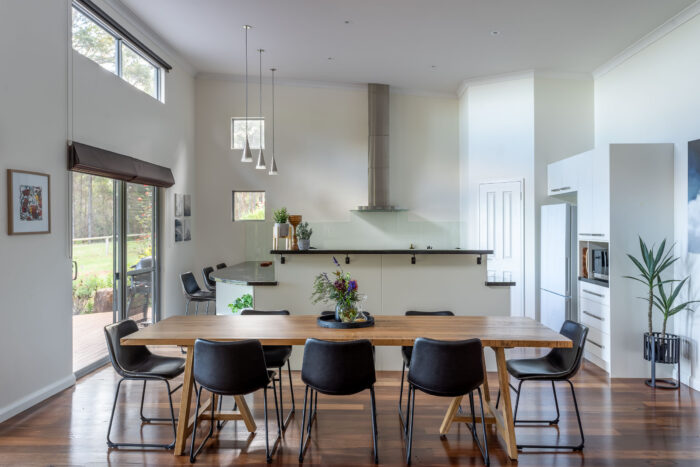 Behind a living fence of towering karri trees hides Roo Corner, a beautiful holiday home that’s made for relaxing.