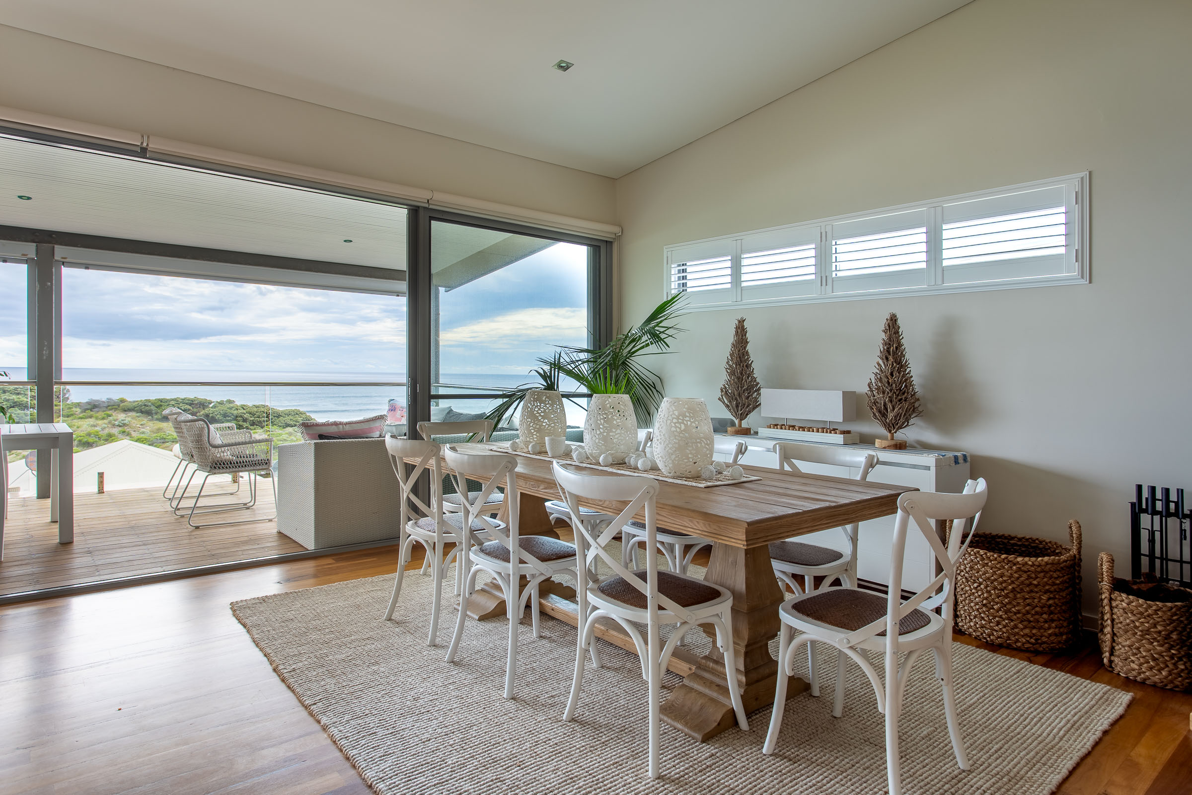 The sound of the breaking waves, the sun sparkling and setting on the ocean and the stylish, coastal interiors will take your breath away at this luxurious holiday home.