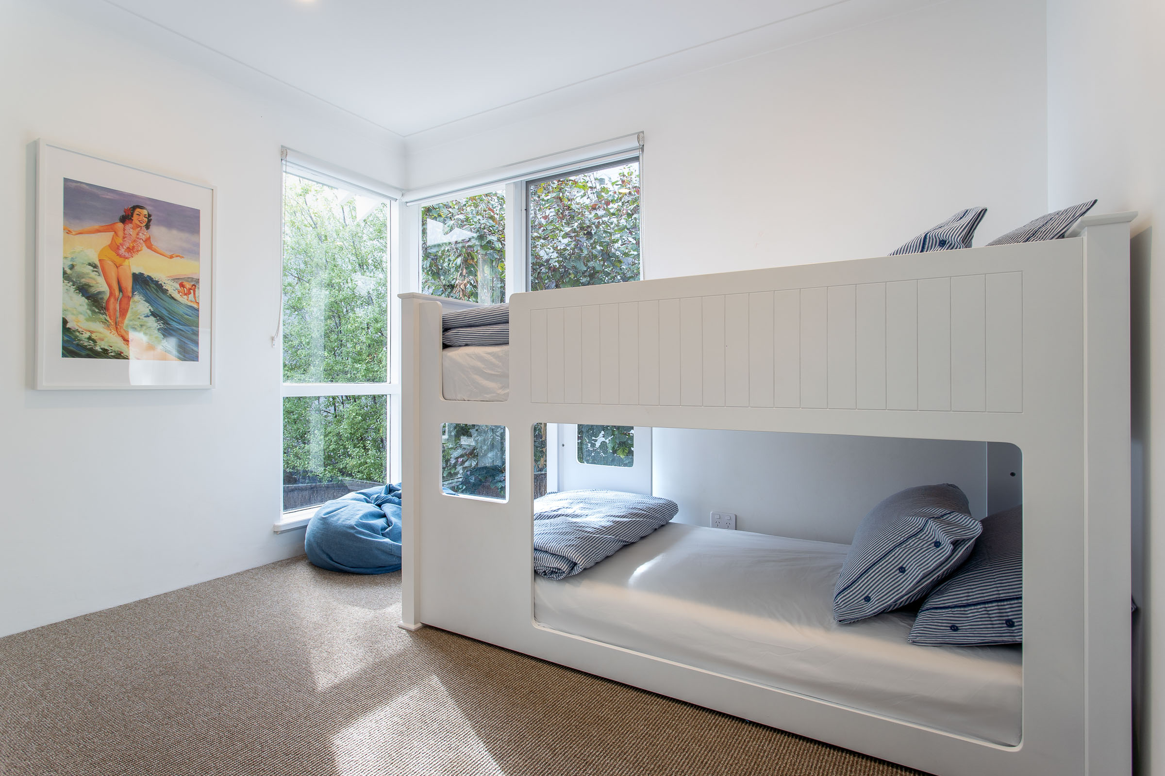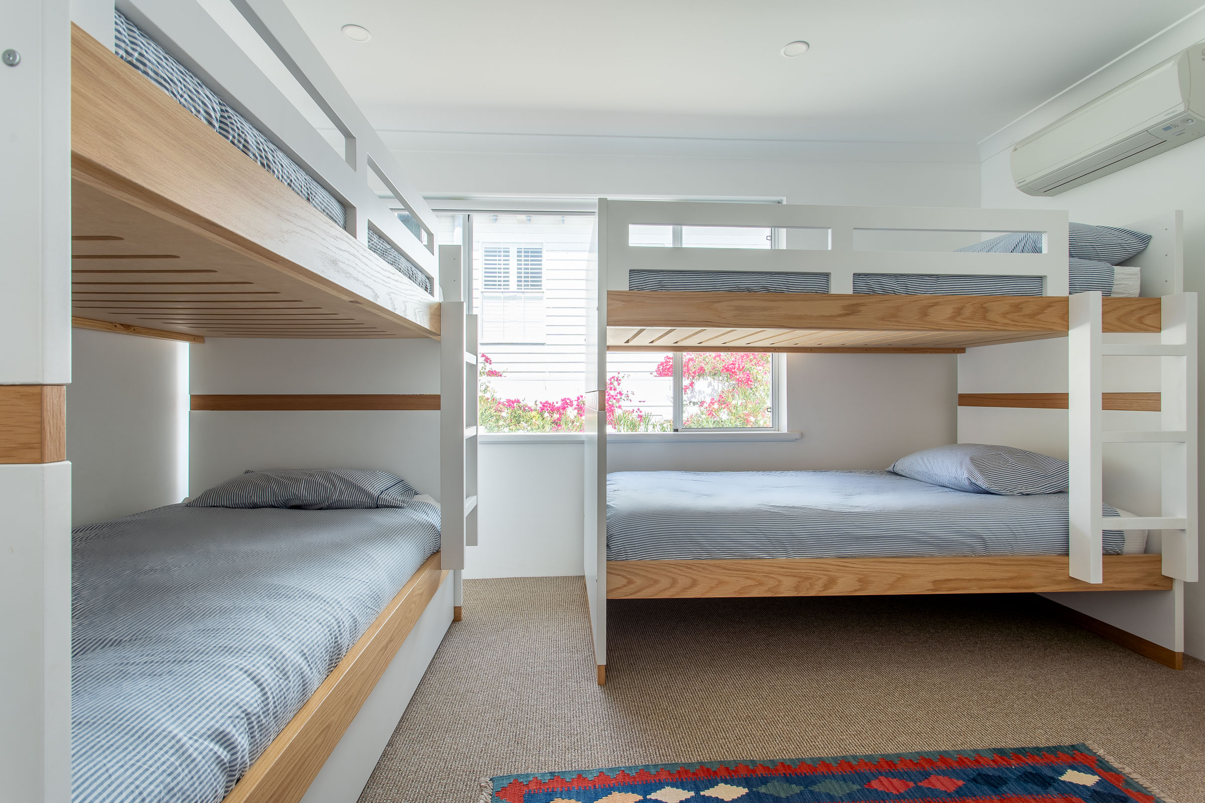 All four bedrooms are on the upper living level. There are two King bedrooms each with an ensuite, and two Bunk rooms. All bedrooms have built-in robes and large windows with black out blinds. Reverse cycle air-conditioning features throughout for an ambient temperature all year round.