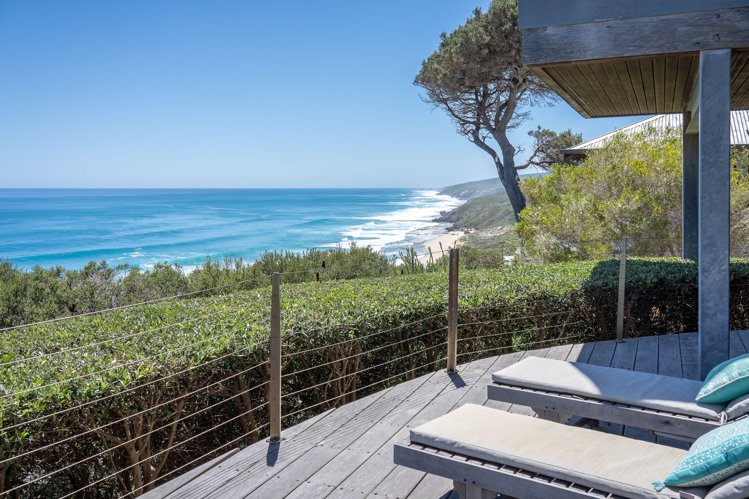 A room with a view is an understatement. Majestically elevated on the Leeuwin-Naturaliste ridgeline, this luxury holiday home boasts jaw-dropping 180-degree vistas of the lush and rugged coastline.