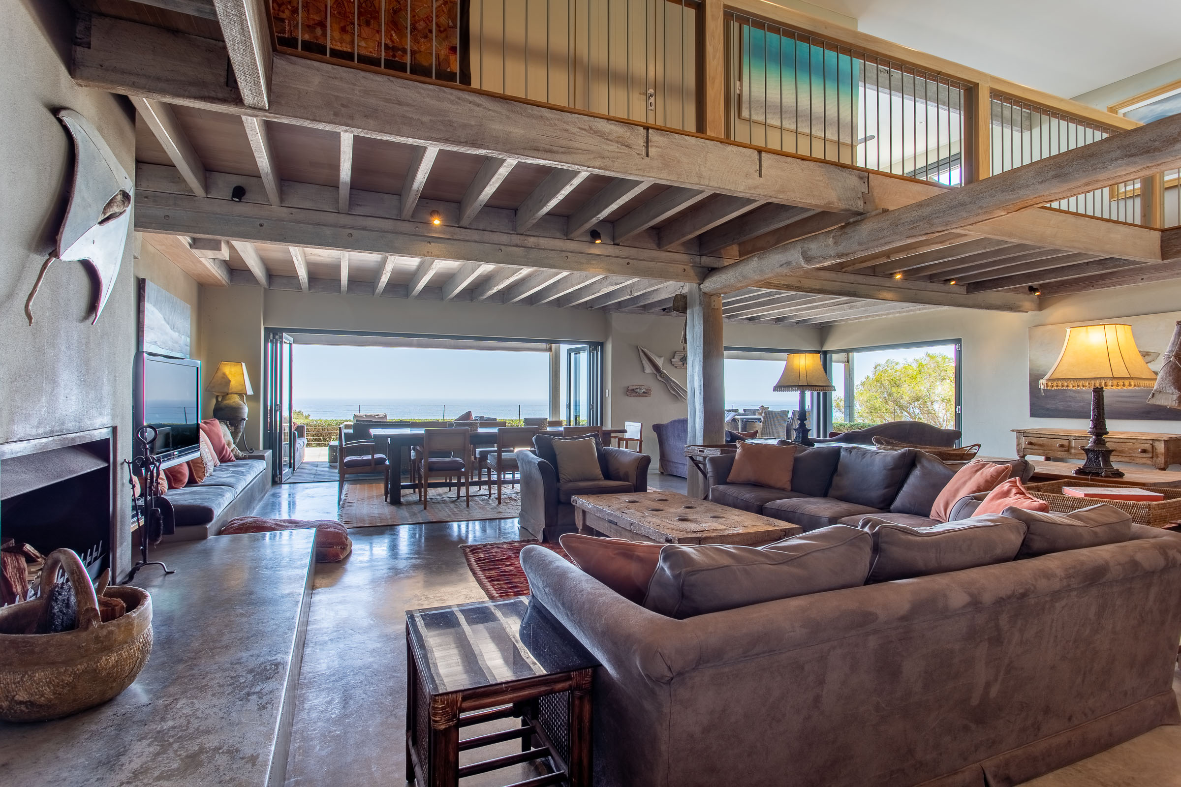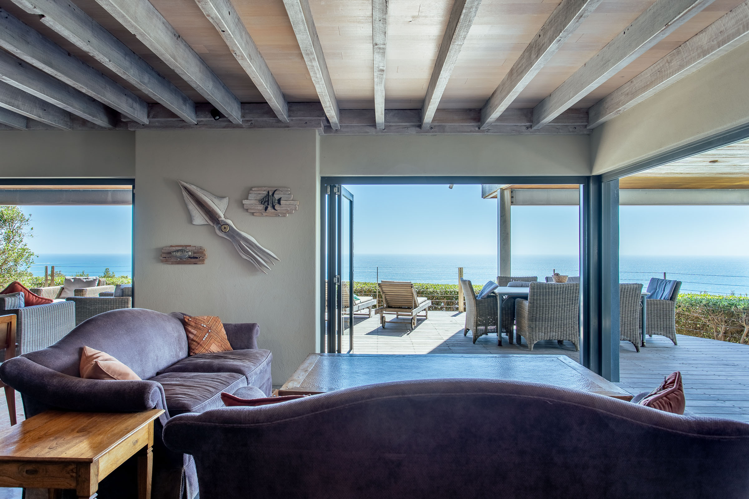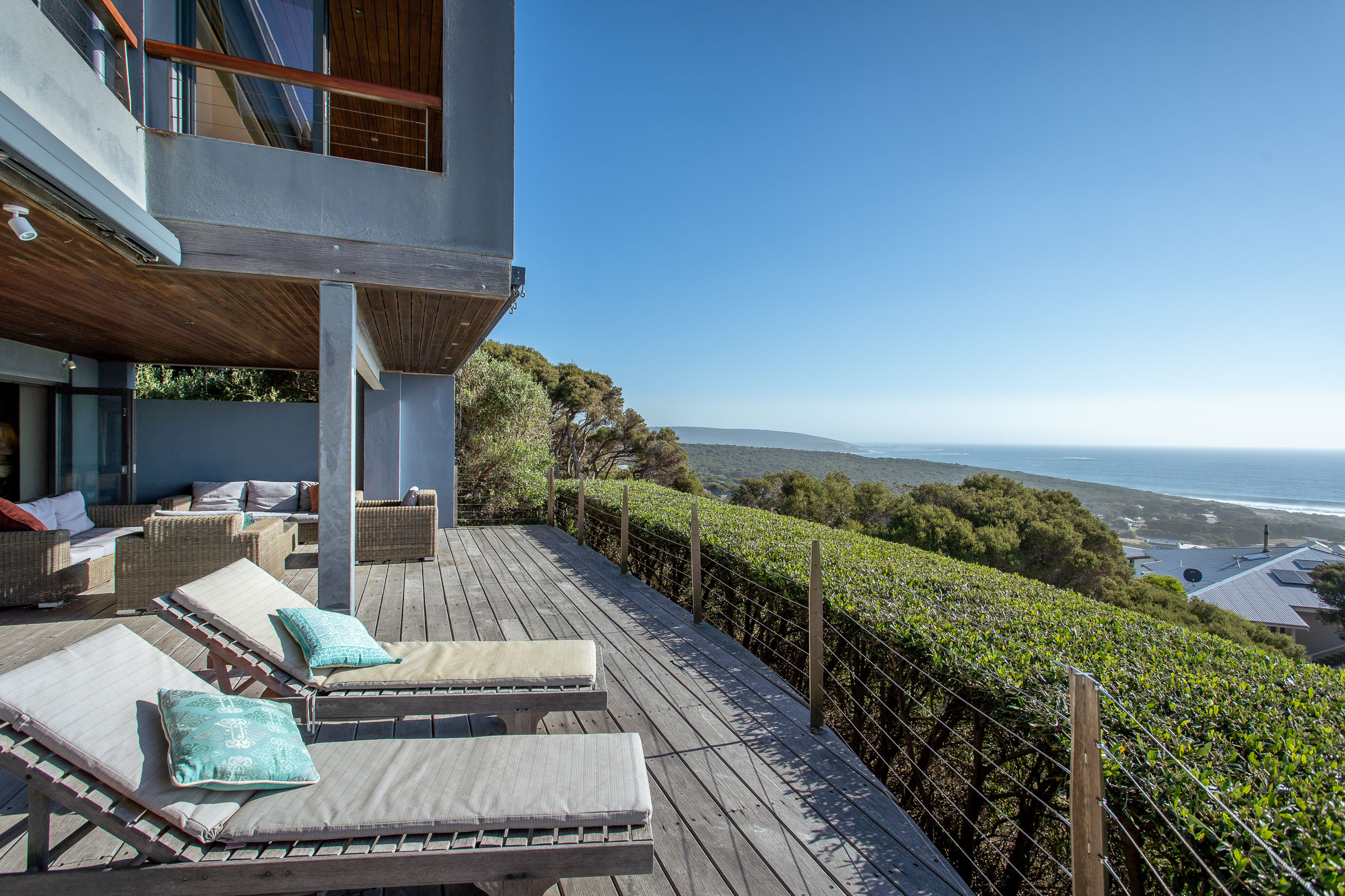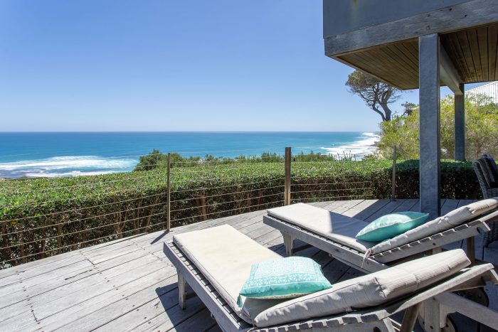 One of the things that sets this multi-storey holiday home apart is the remarkable ‘choose your own experience’ view. Step out onto the balcony in the morning and take in the brilliant blue sky overhead and the sunshine sparkling on the ocean. Or relax on the deck at dusk as the fading light transforms the sky into delicate shades of pink and purple. Come winter, you’ll enjoy watching spectacular storm clouds roll in while you stay snug by the fire.
