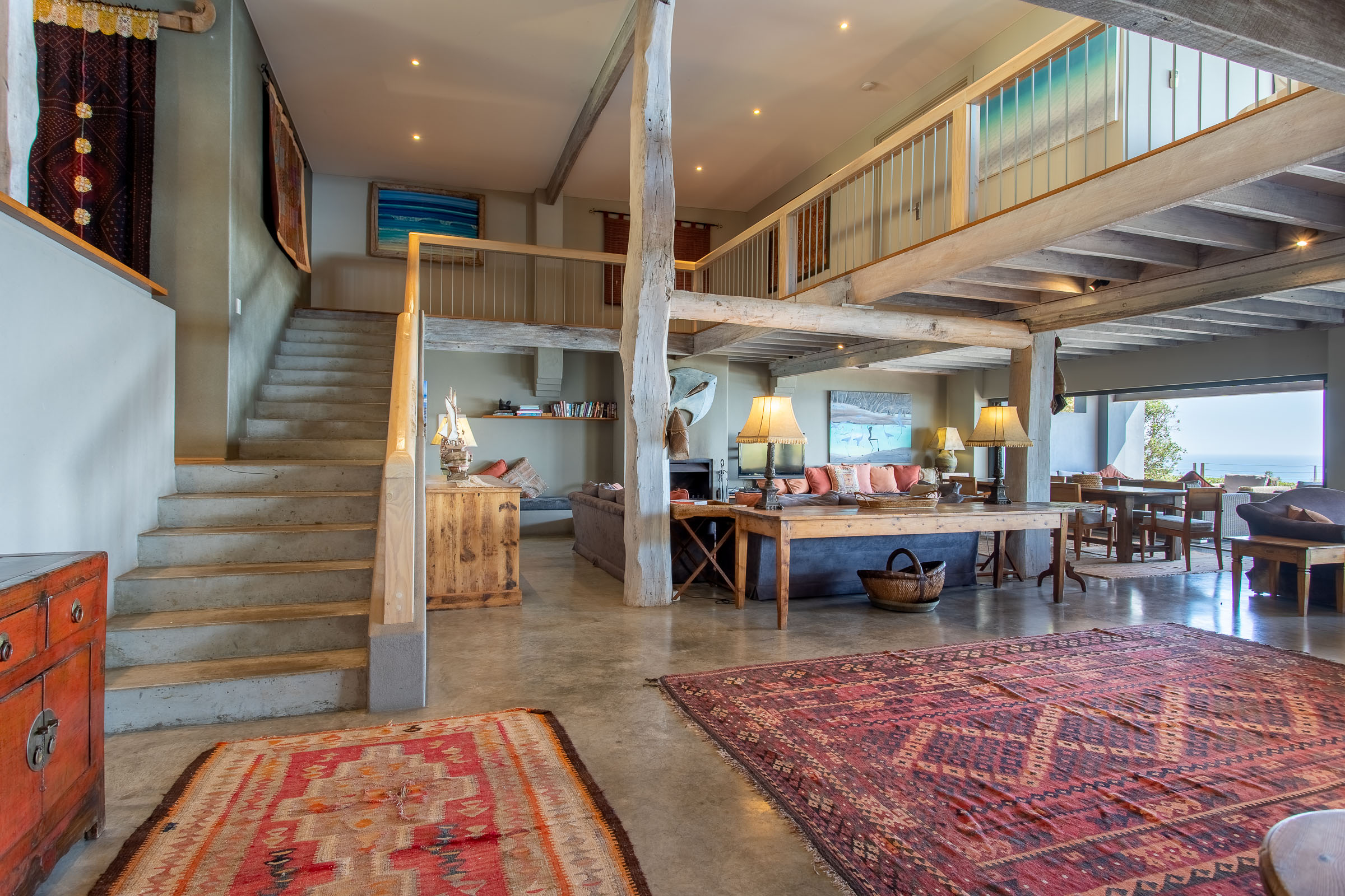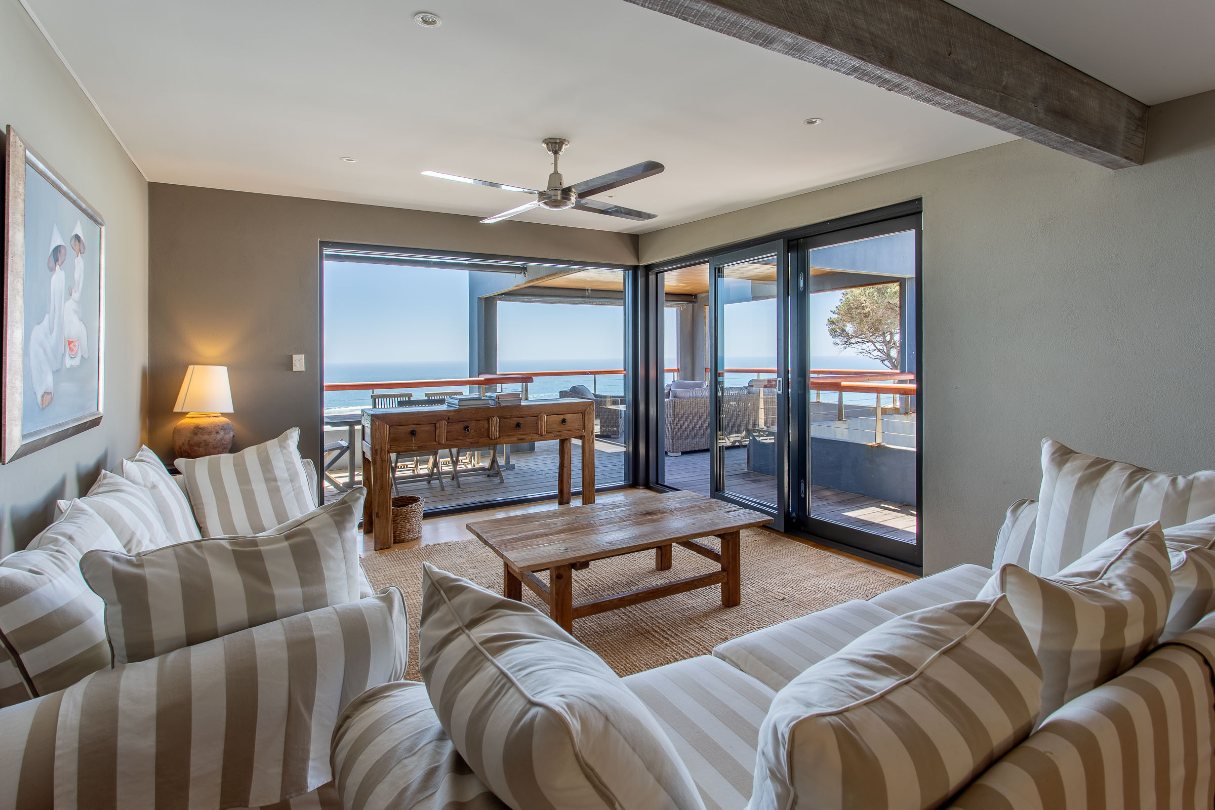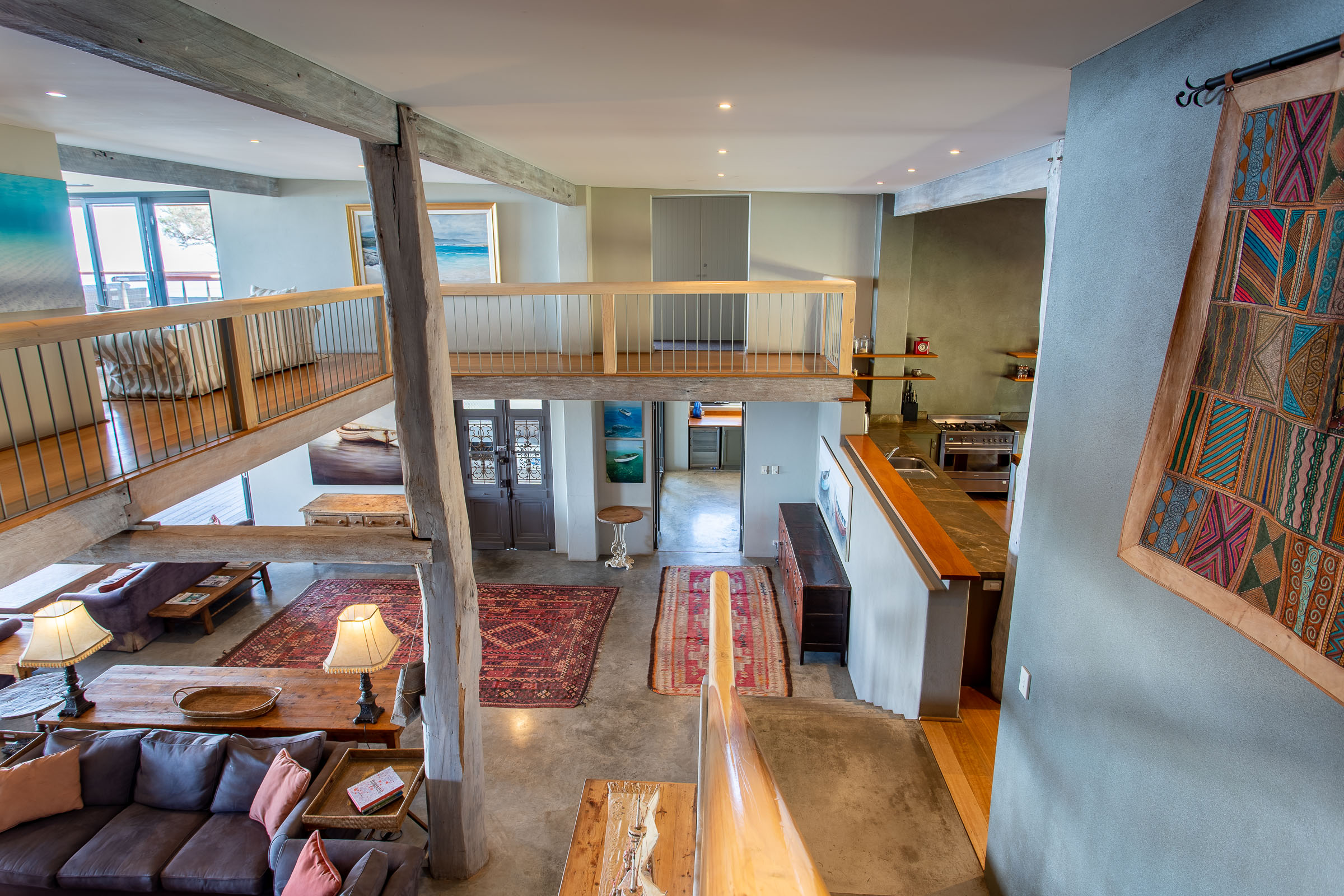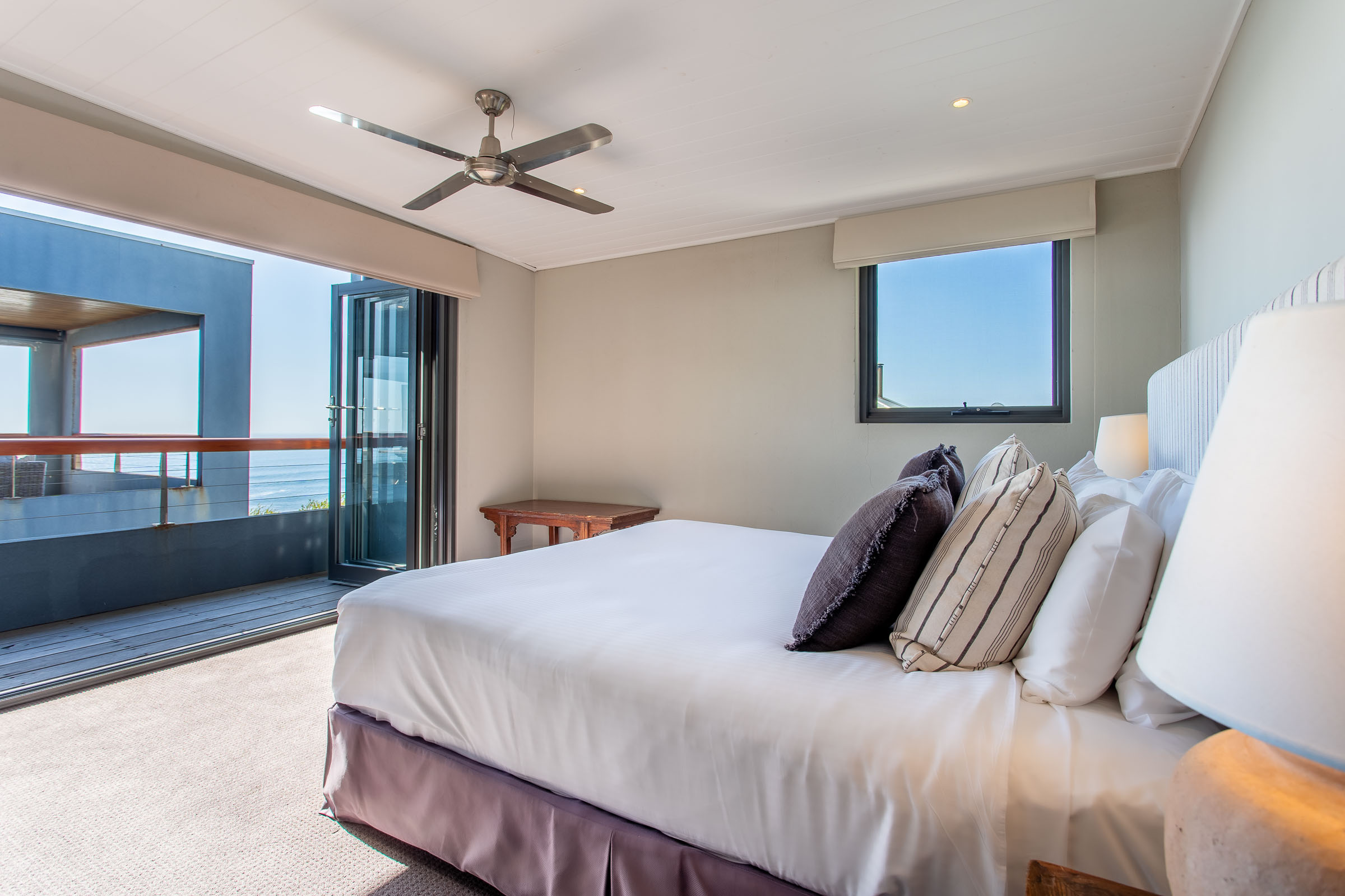 One of the things that sets this multi-storey holiday home apart is the remarkable ‘choose your own experience’ view. Step out onto the balcony in the morning and take in the brilliant blue sky overhead and the sunshine sparkling on the ocean. Or relax on the deck at dusk as the fading light transforms the sky into delicate shades of pink and purple. Come winter, you’ll enjoy watching spectacular storm clouds roll in while you stay snug by the fire.