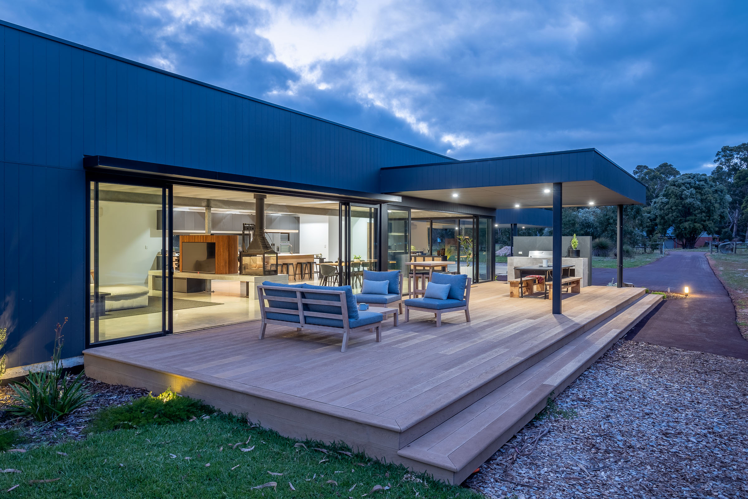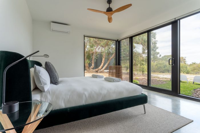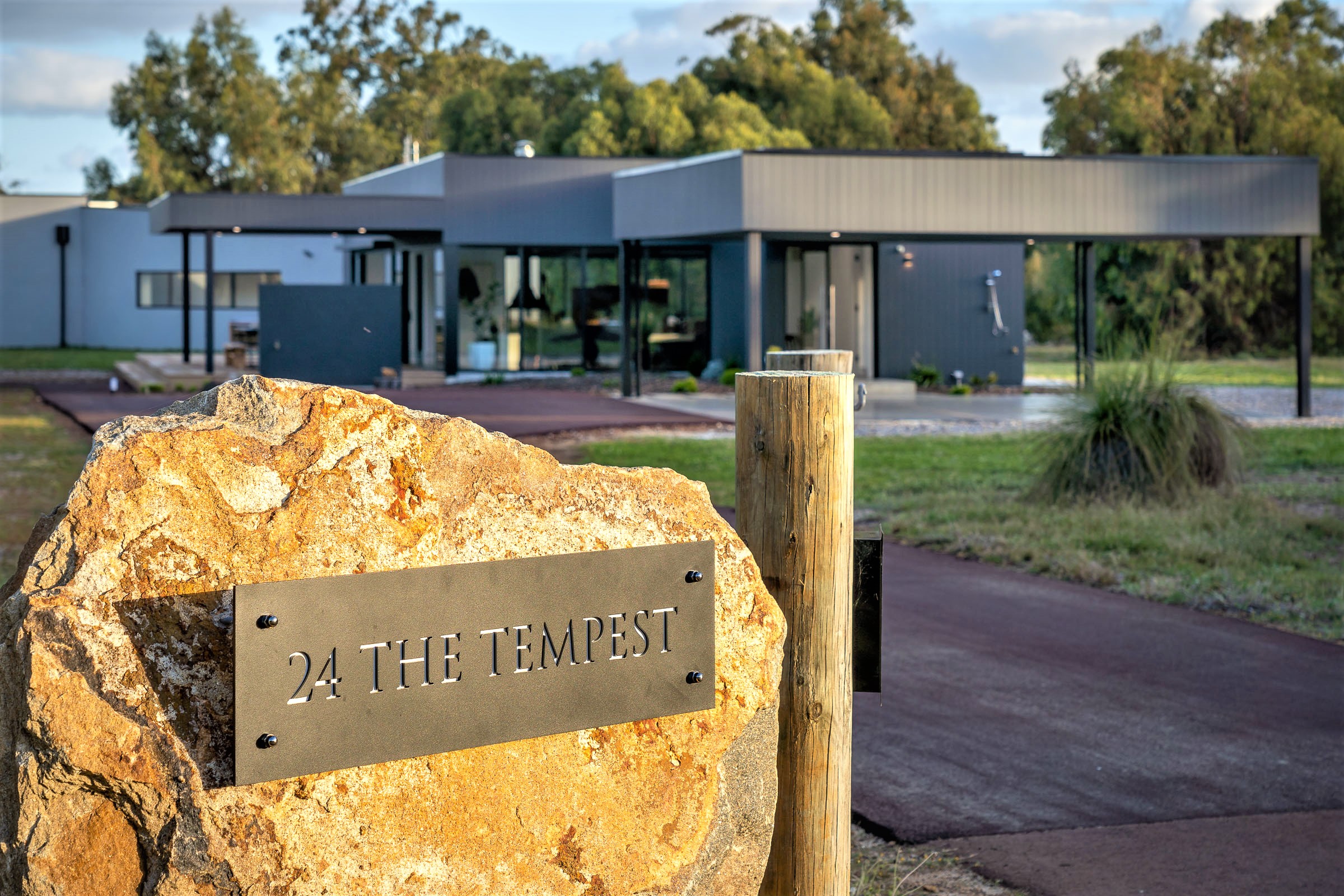 Eucalyptus trees and Australian native bush can be found dotted around The Tempest – a new holiday home in Quindalup that is the definition of minimalism.