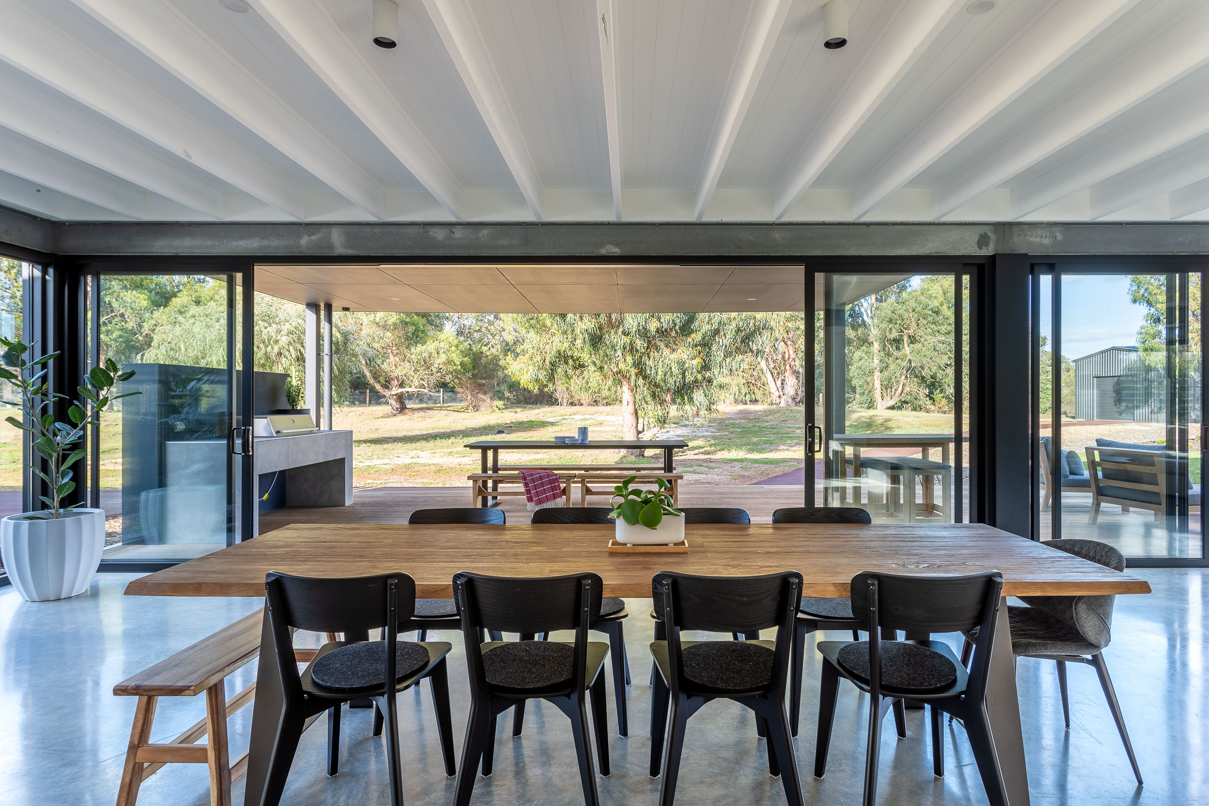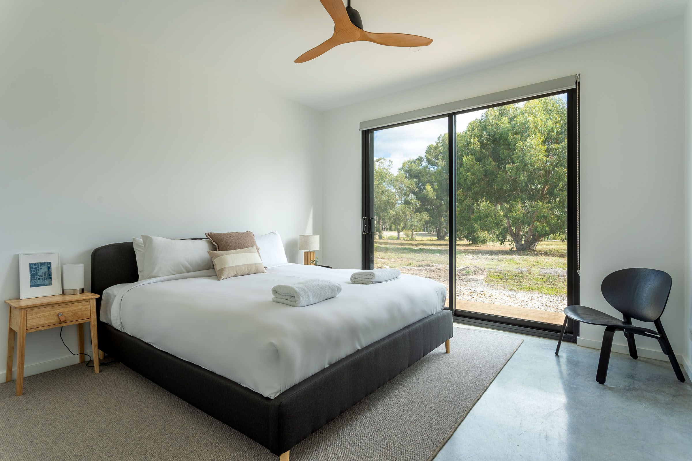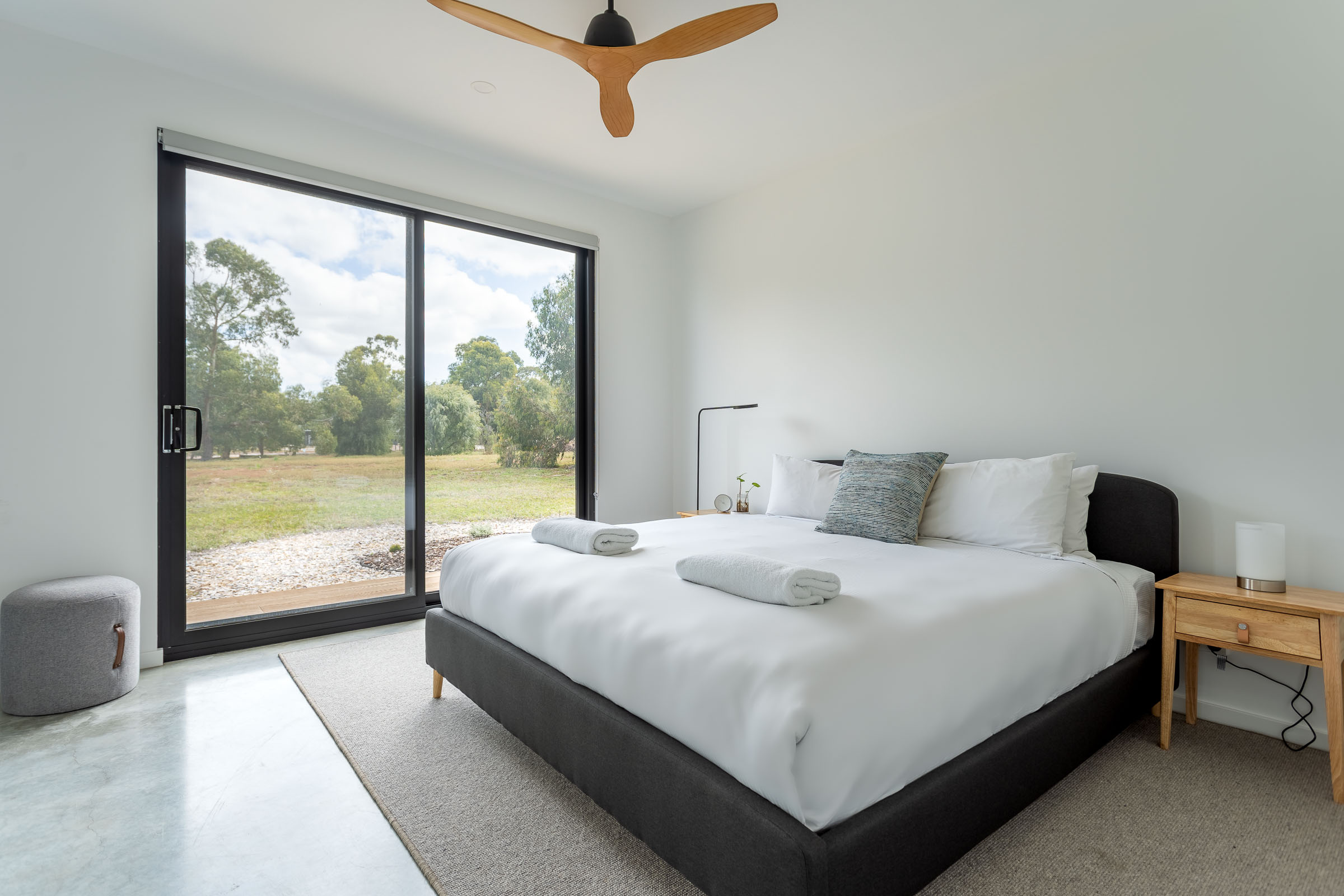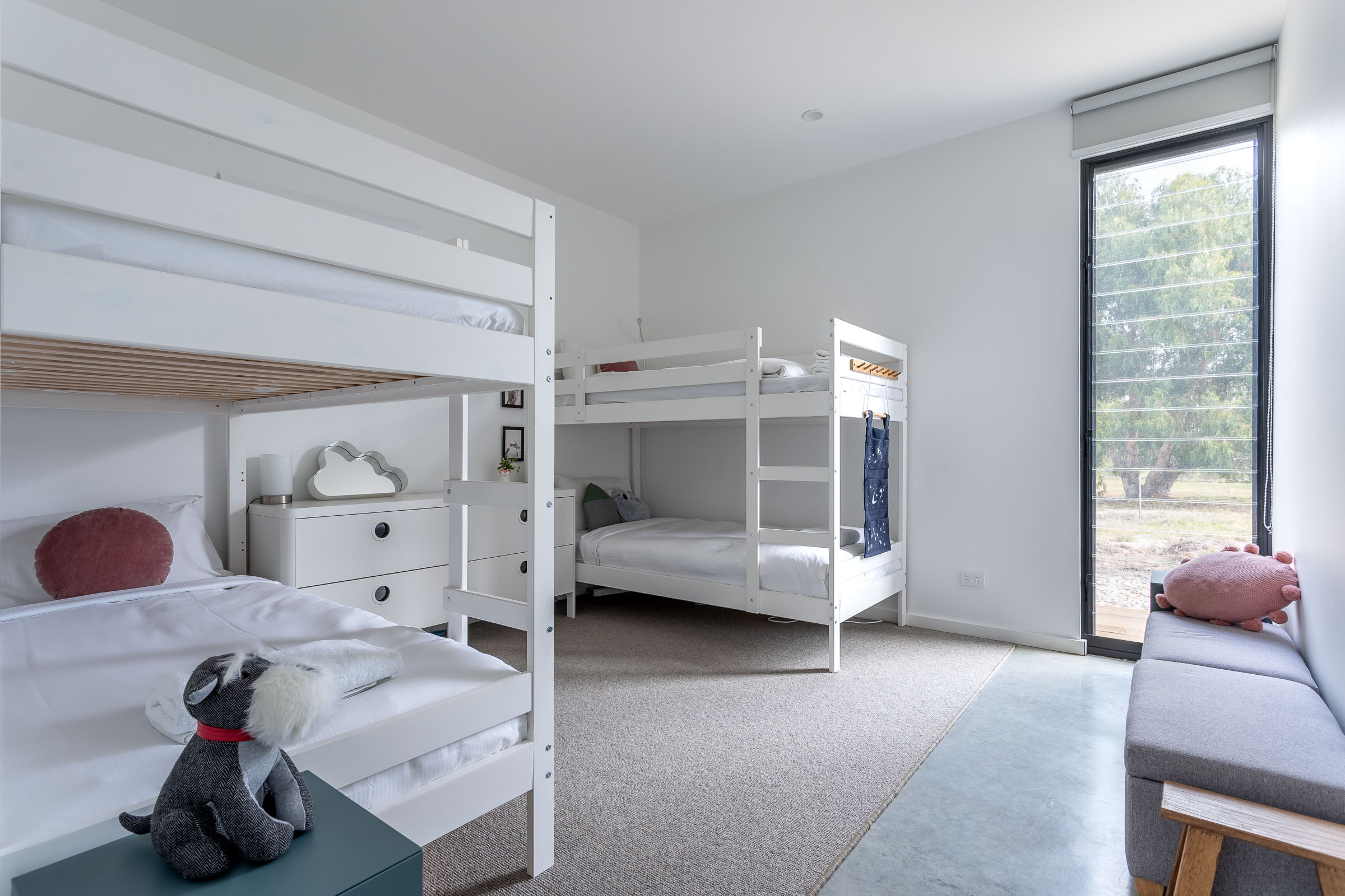 Featuring raw concrete, stark black cladding and hints of timber and steel, this new rural residence is the perfect setting for your next holiday in the South West. Featuring five bedrooms, two bathrooms and a powder room, The Tempest is a family (and pet) friendly home set up to make the most of the great outdoors.