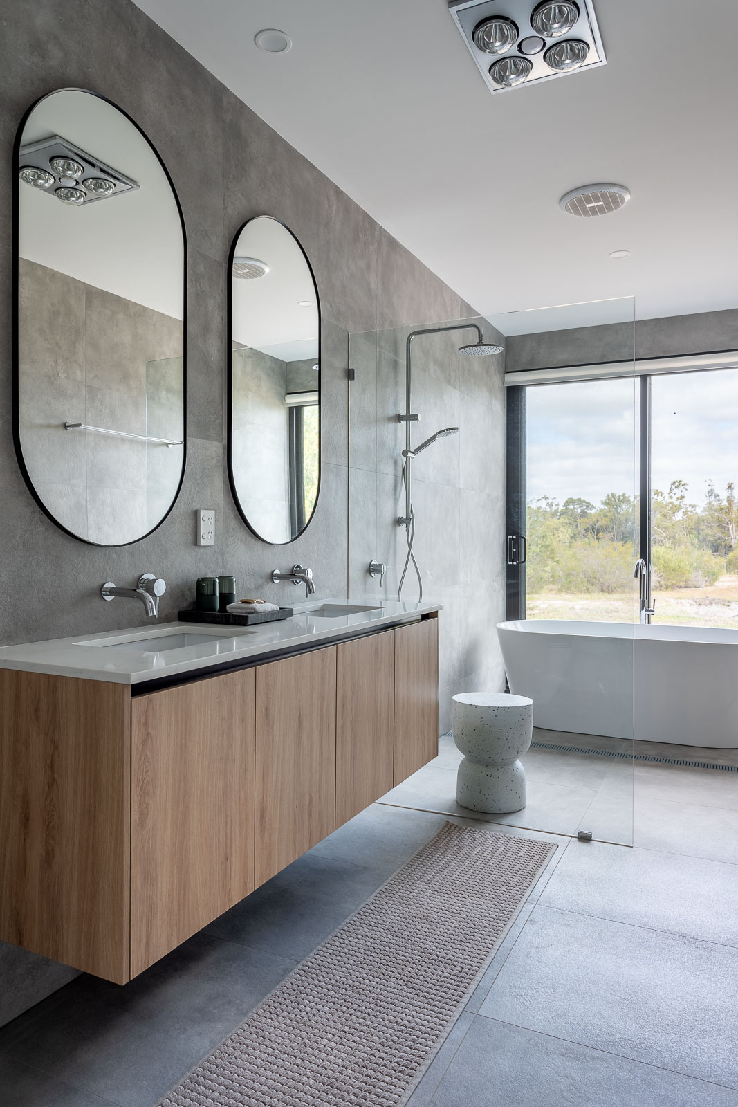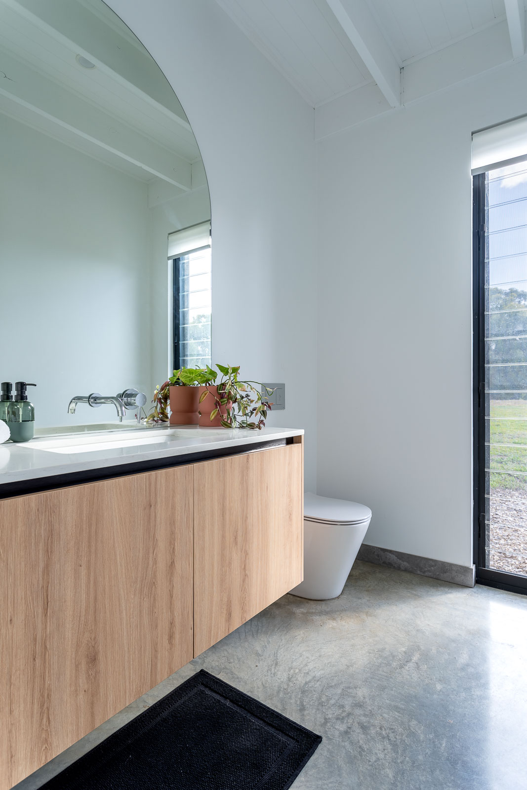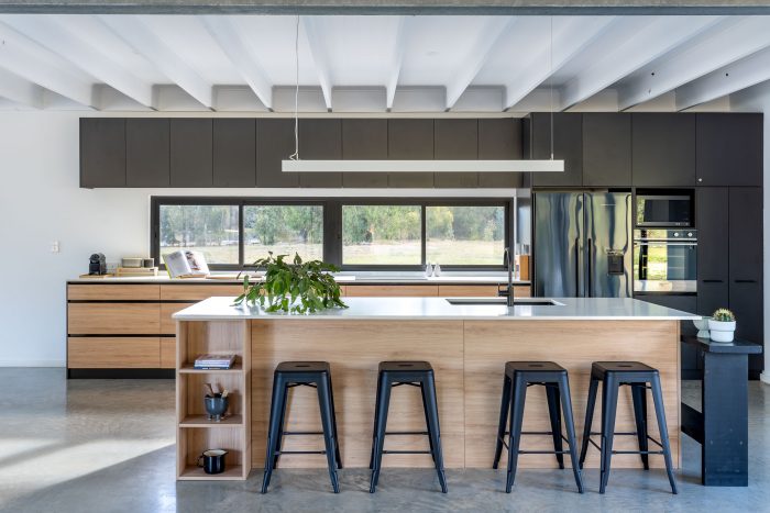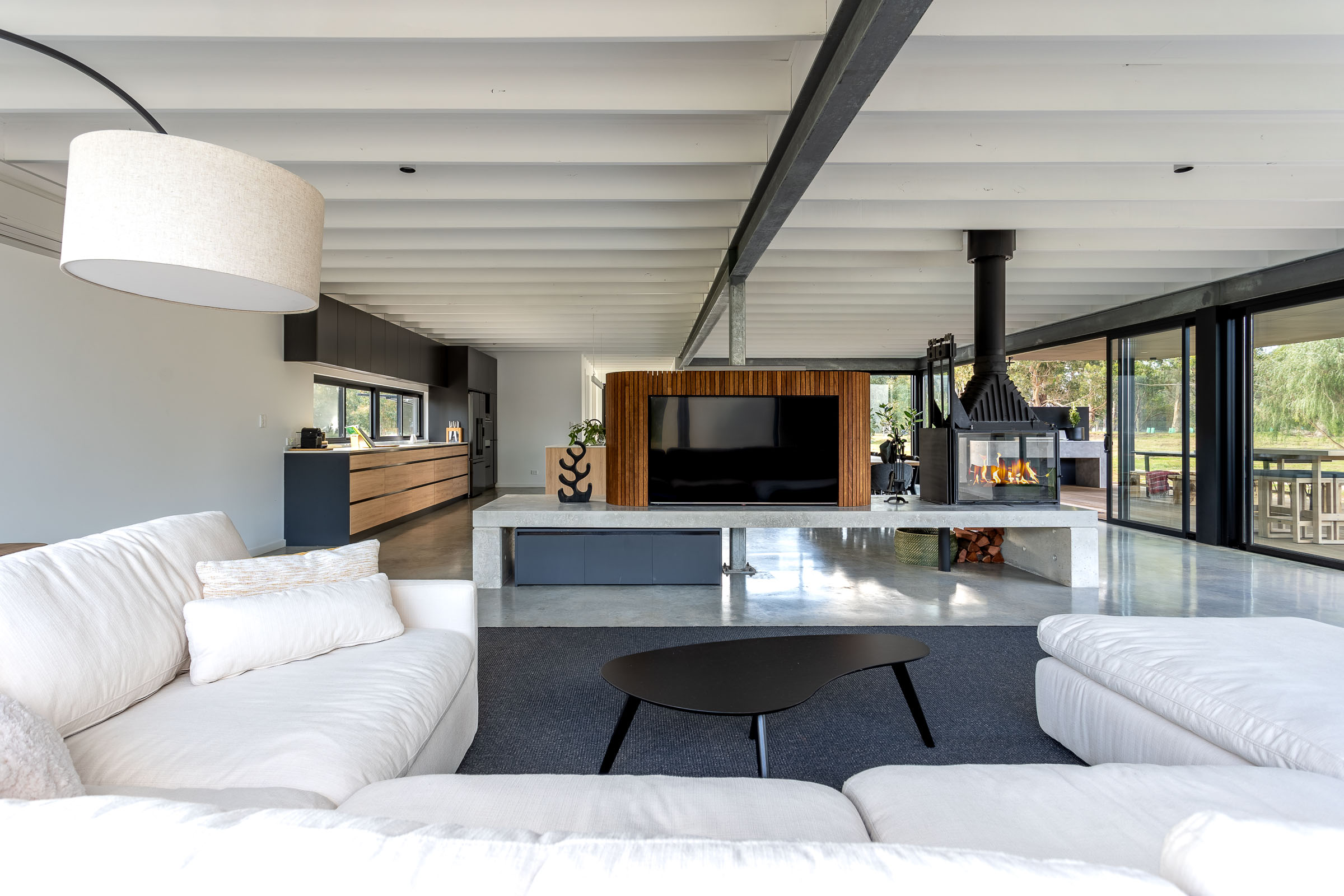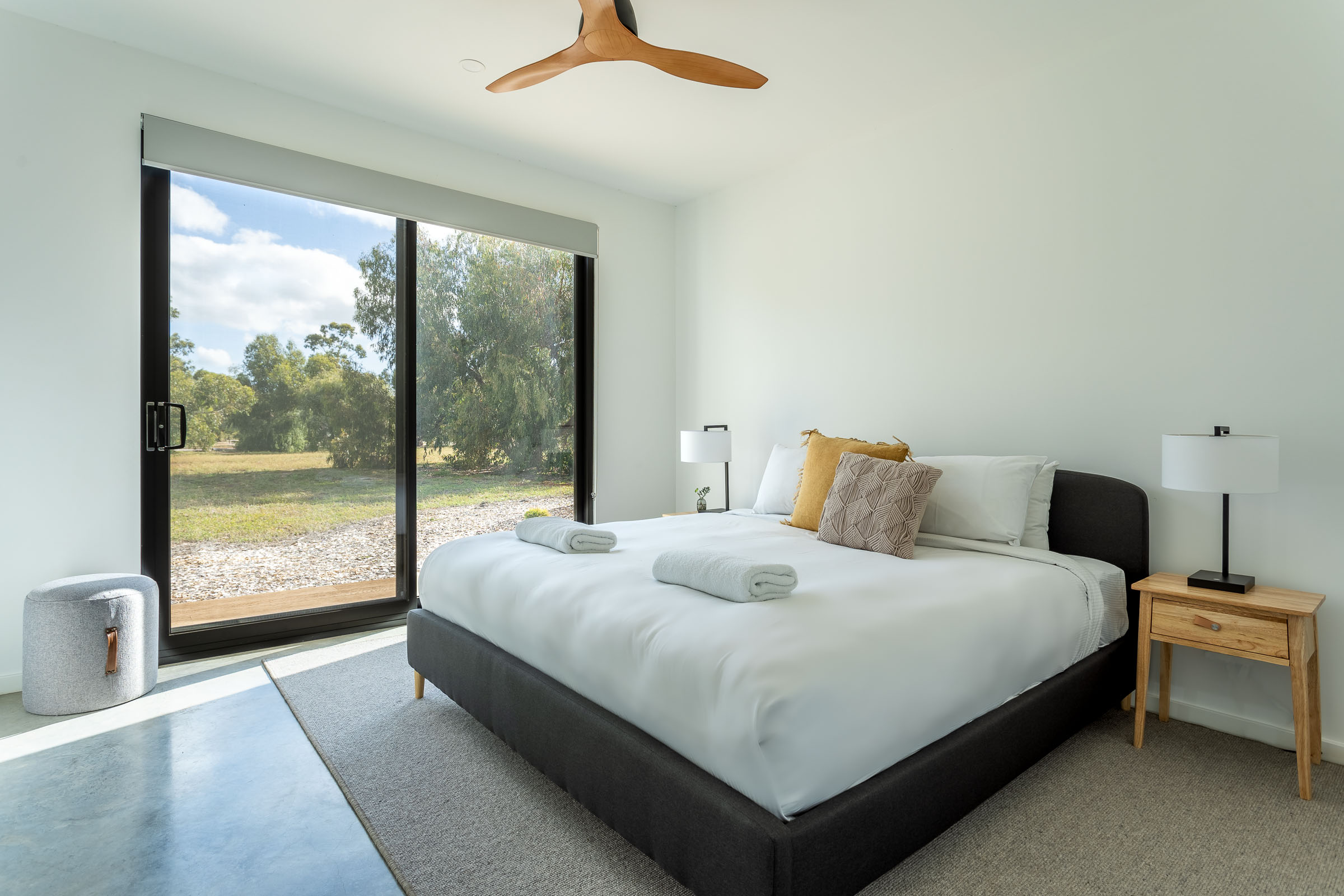 Featuring raw concrete, stark black cladding and hints of timber and steel, this new rural residence is the perfect setting for your next holiday in the South West. Featuring five bedrooms, two bathrooms and a powder room, The Tempest is a family (and pet) friendly home set up to make the most of the great outdoors.